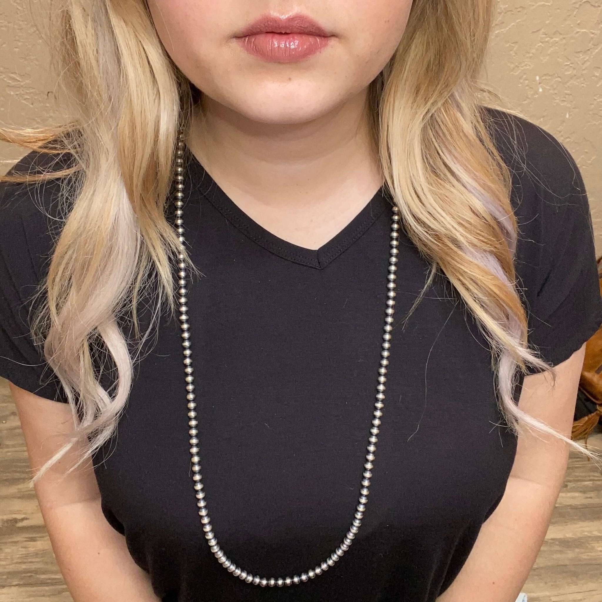 36 inch 6mm Sterling Silver Navajo Pearl Necklace