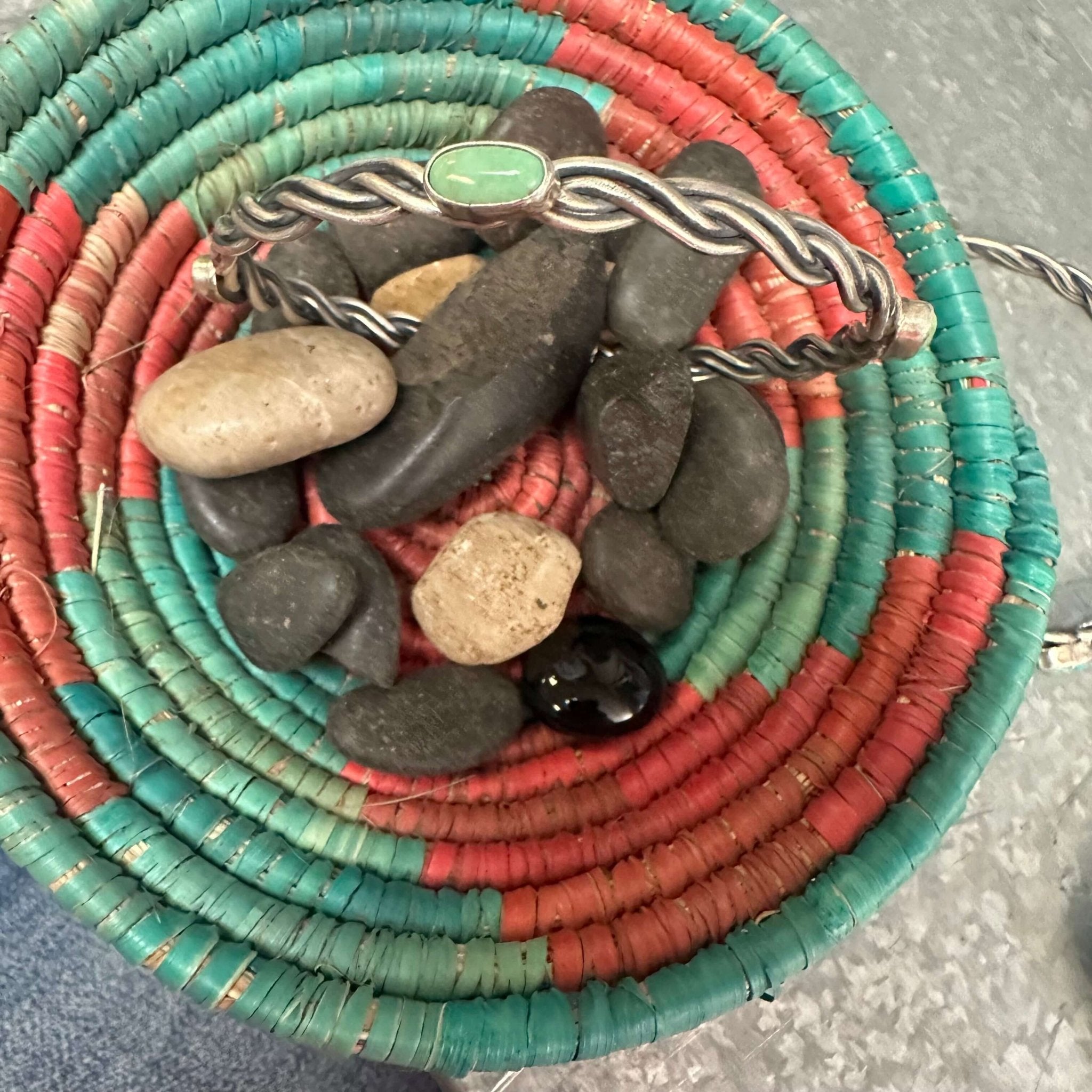 Turquoise Bangle with Twisted Band Sterling Silver Bracelet