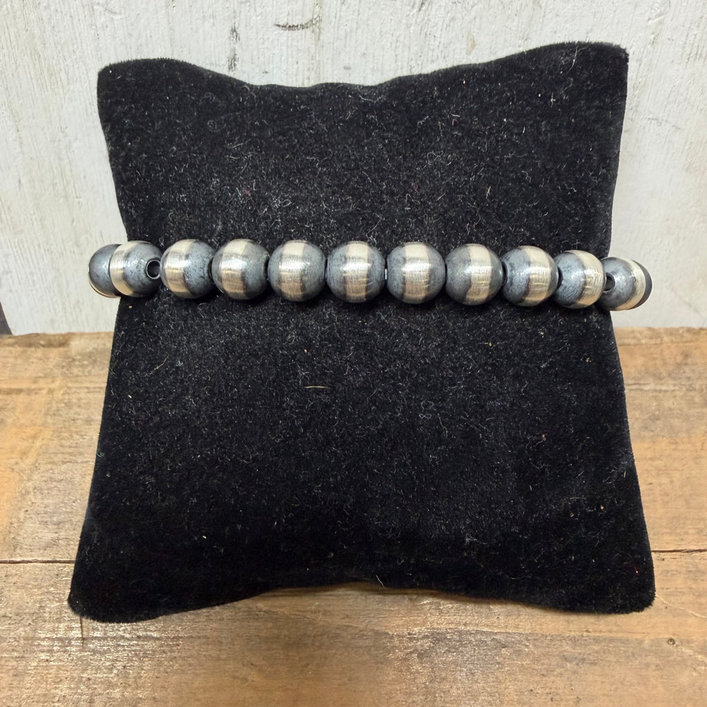 8mm Navajo Pearl Stretchy Sterling Silver Bracelet