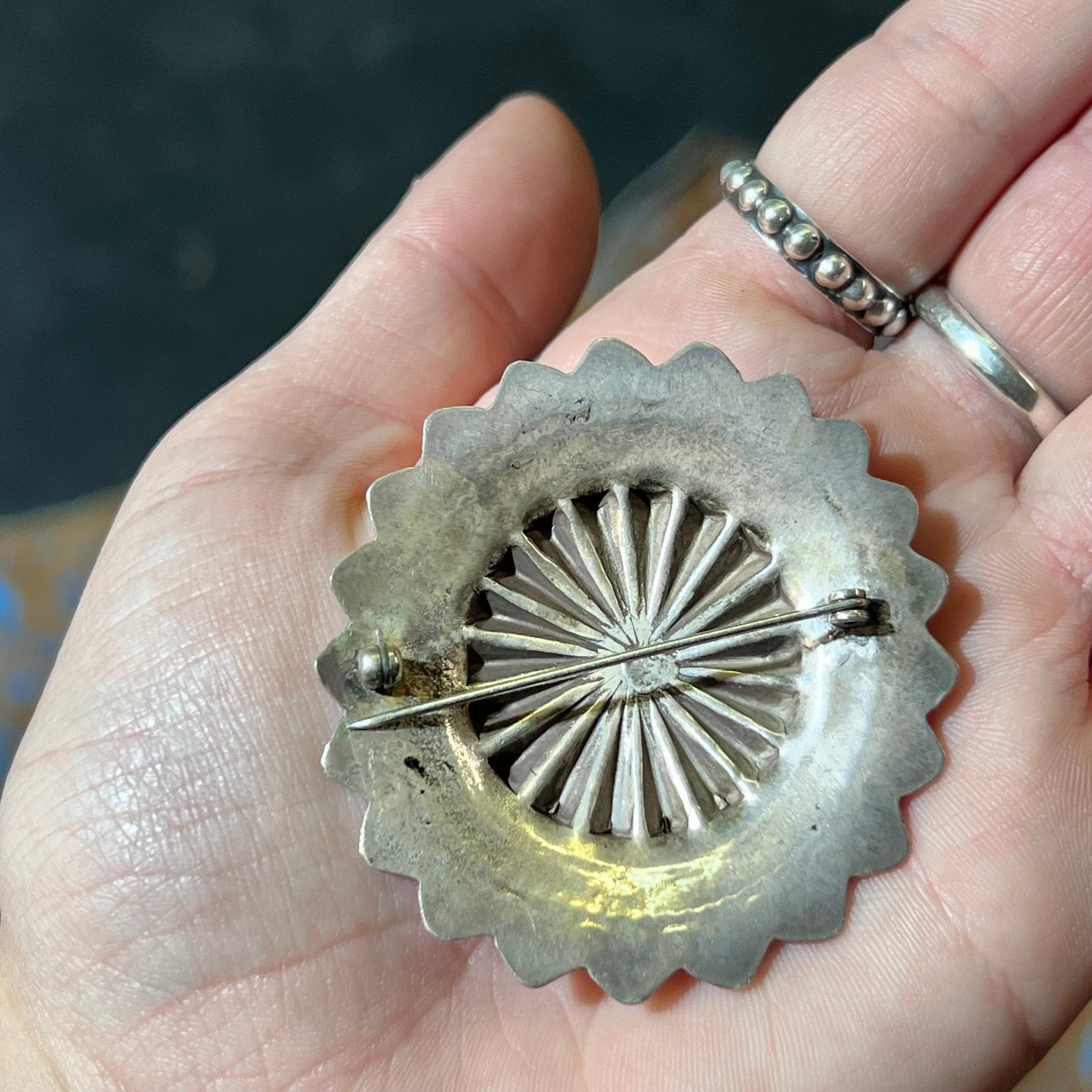 Vintage Turquoise Concho Hat Sterling Silver Pin