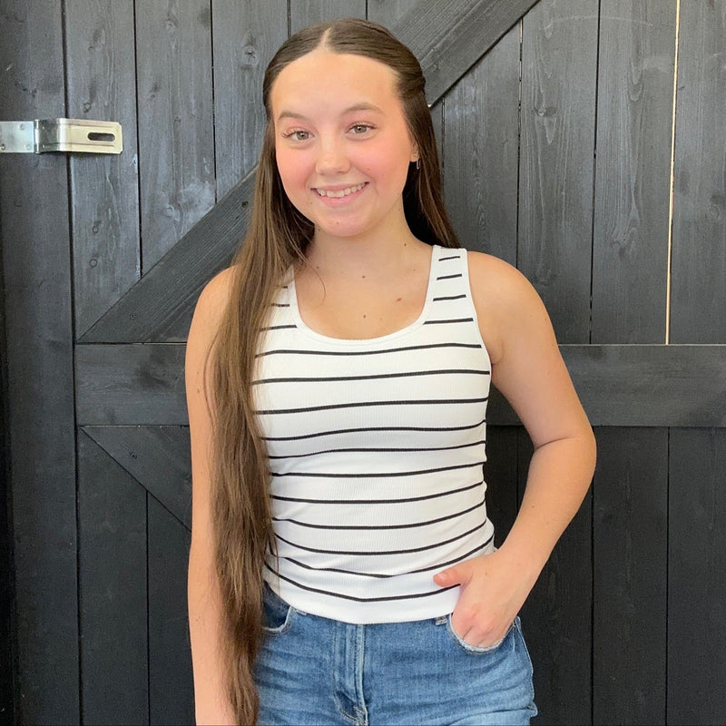 Black & White Striped Ribbed Tank Top with Built in Bra