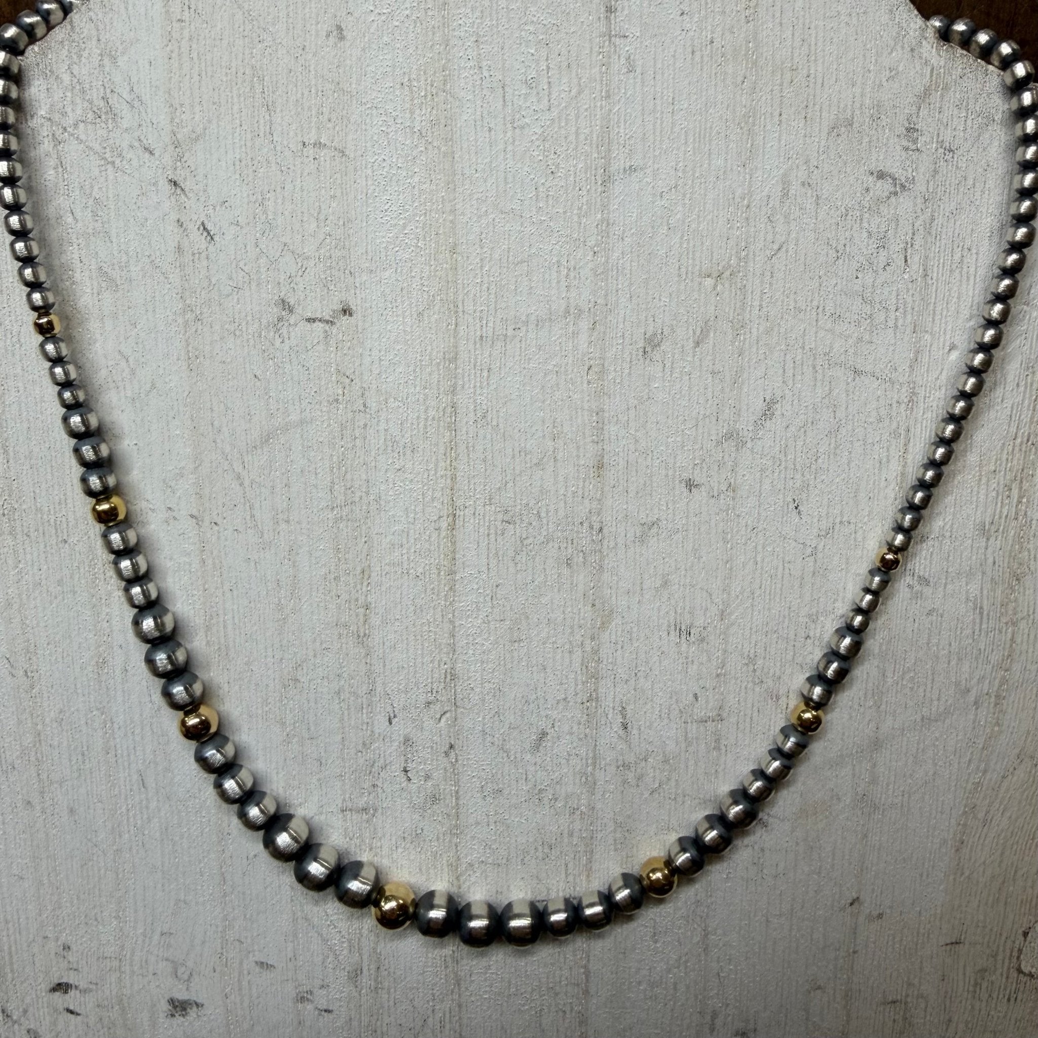 16 inch Graduated Navajo Pearl With Gold Plated Pearls Sterling Silver Necklace