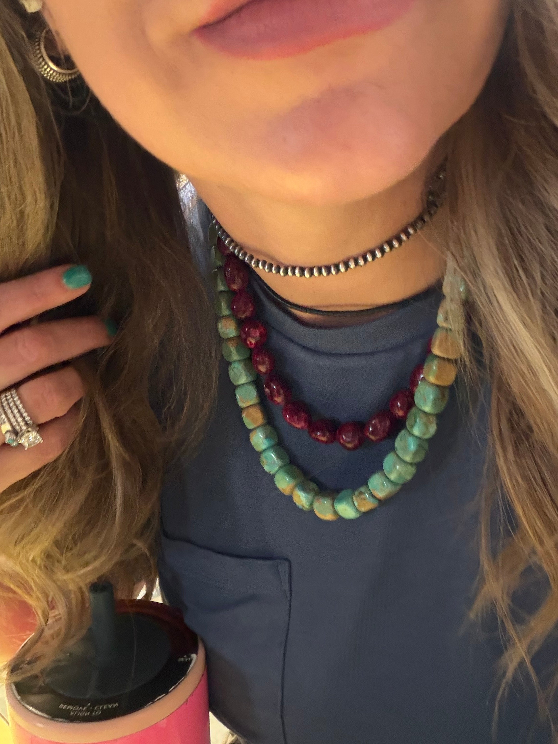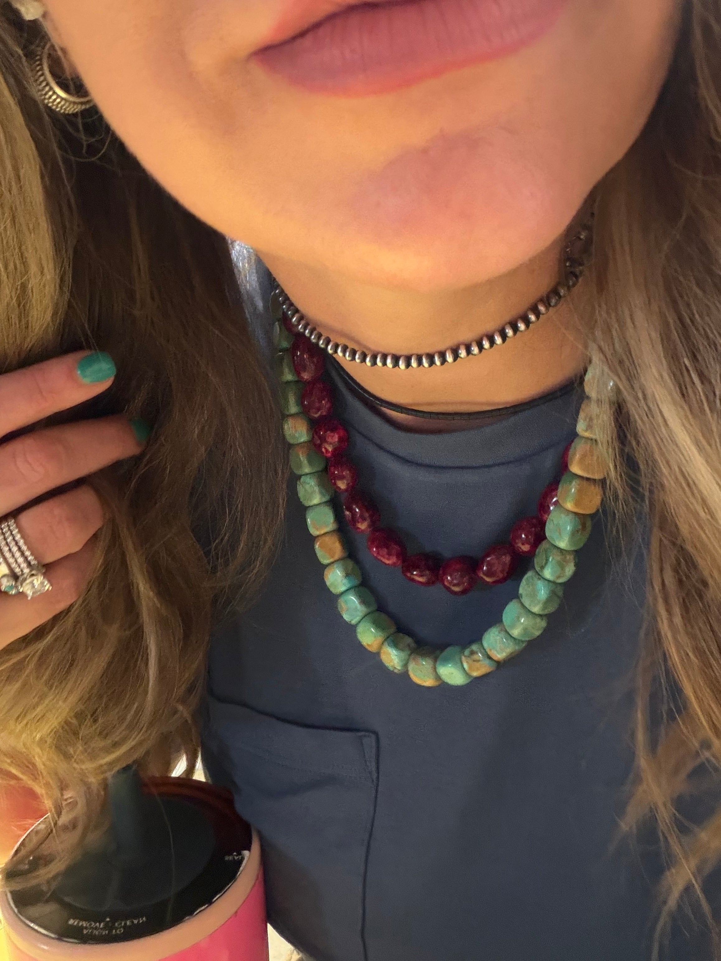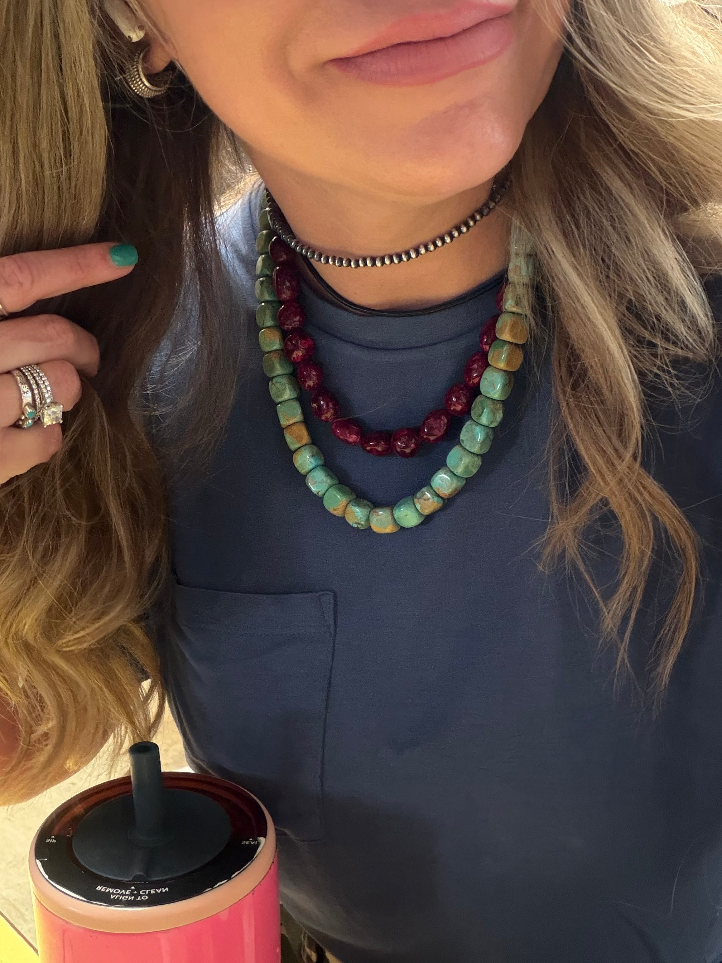 16 inch Green Square Kingman Turquoise Sterling Silver Necklace extender