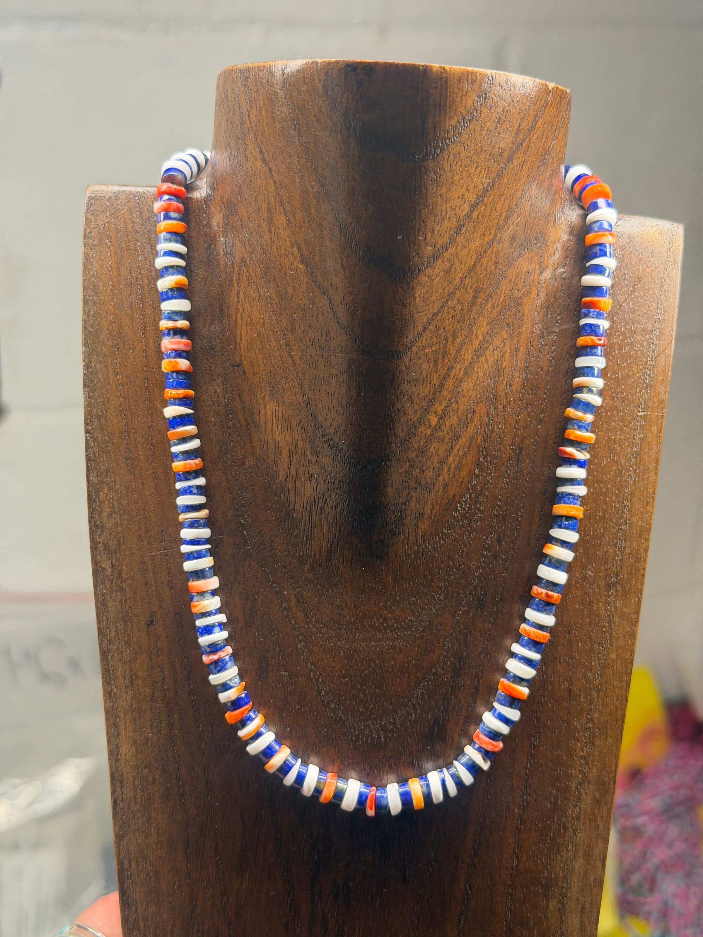 16 inch Orange Spiny & Lapis Sterling Silver Necklace