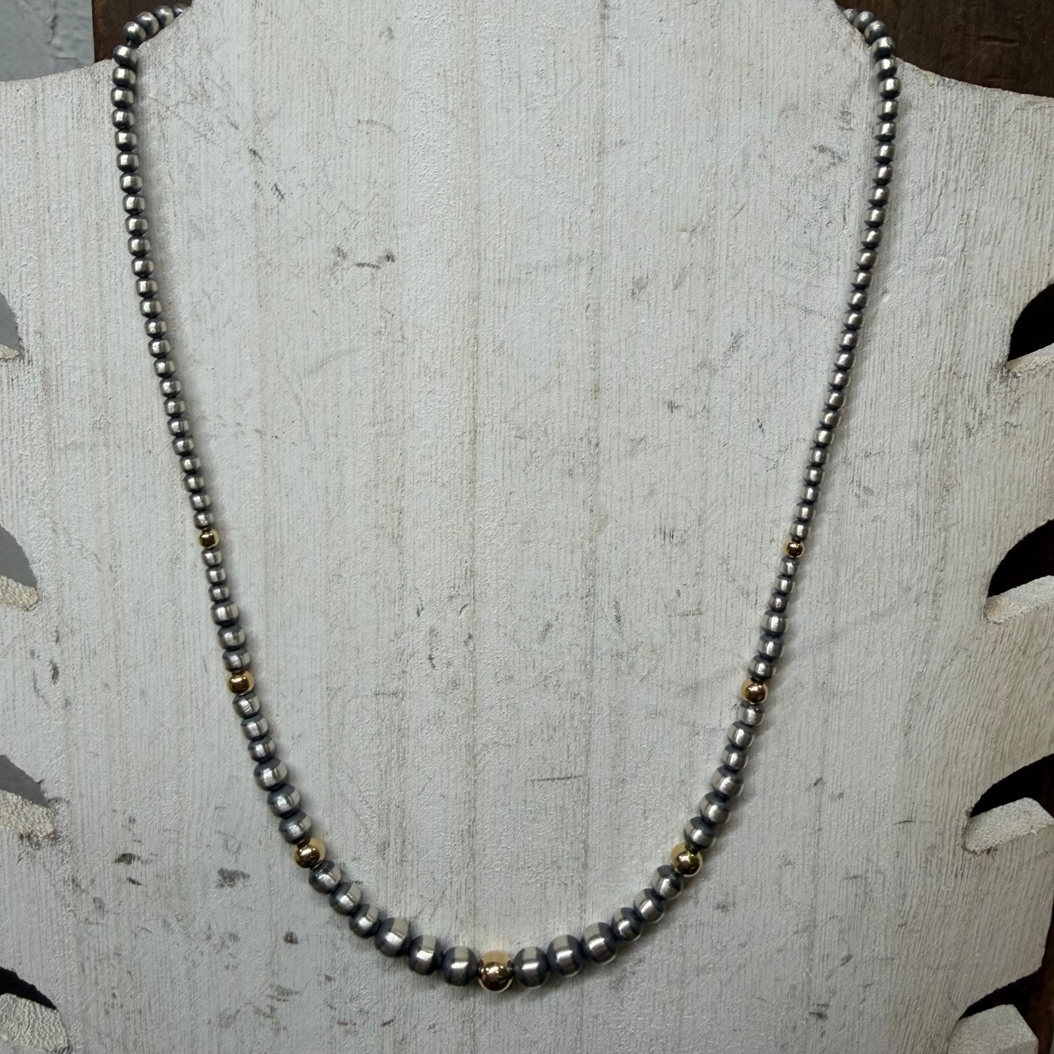 18 inch Graduated Navajo Pearl With Gold Plated Pearls Sterling Silver Necklace