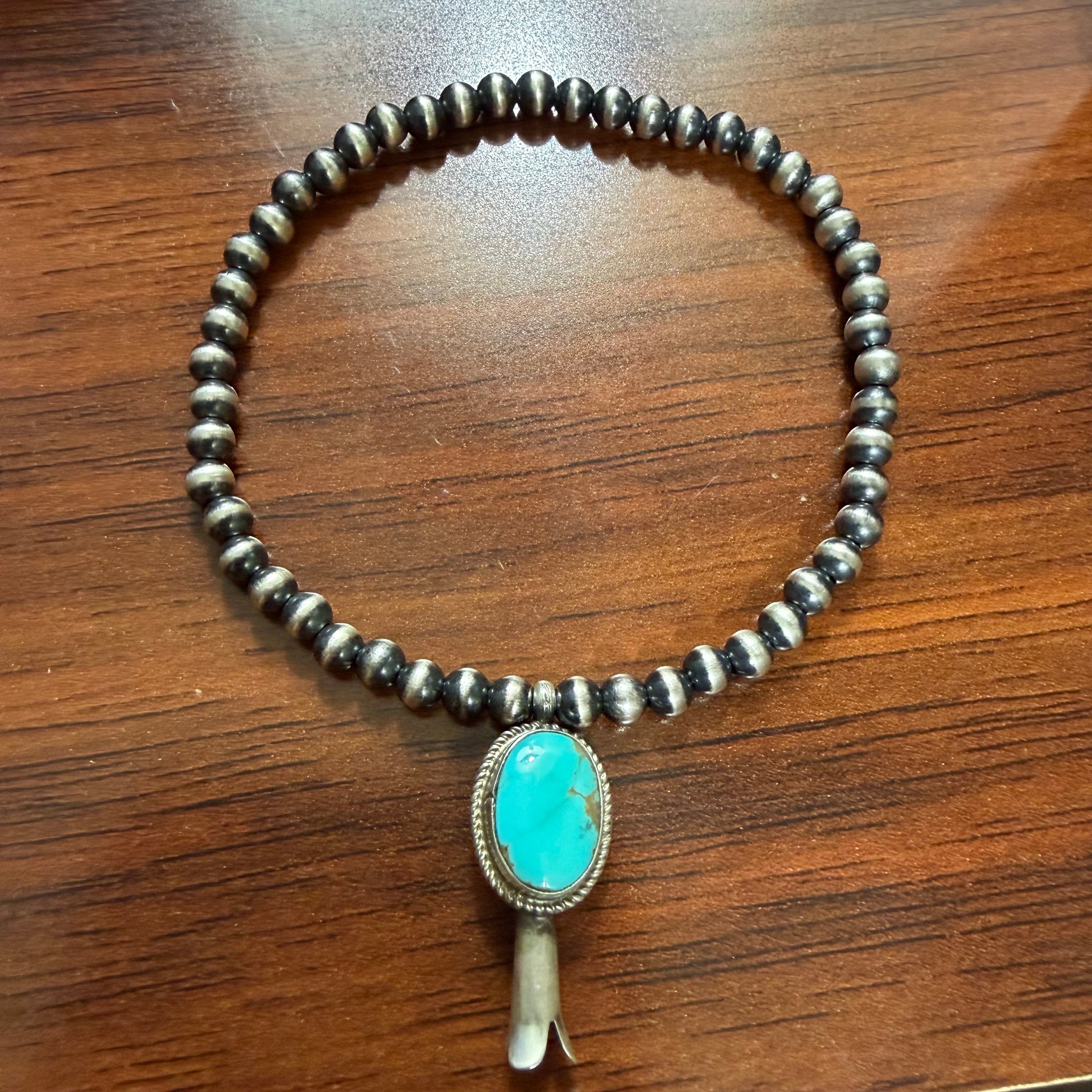4mm Navajo Pearl with Turquoise Blossom Sterling Silver Stretchy Bracelet