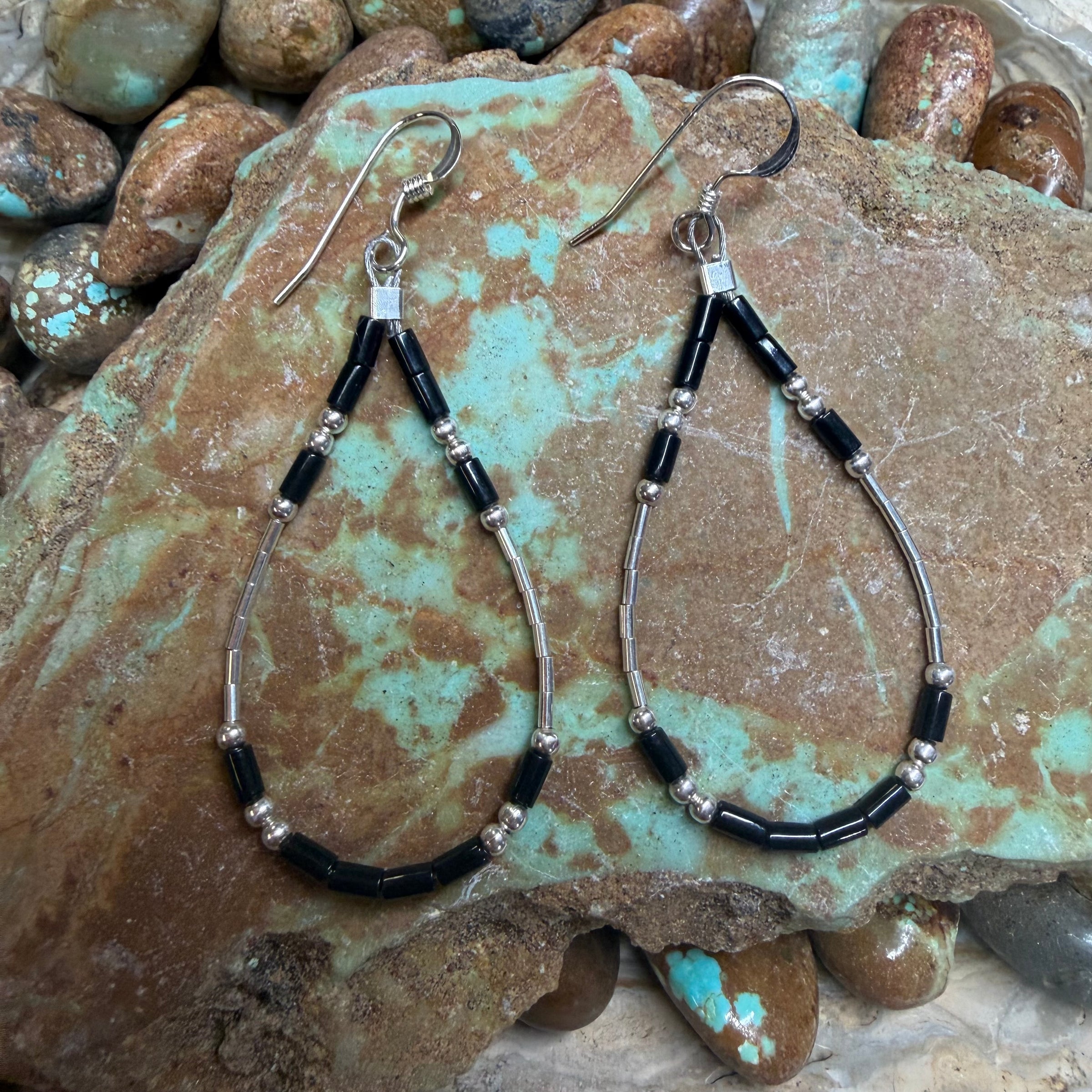 Black Jet French Hook Sterling Silver Earring