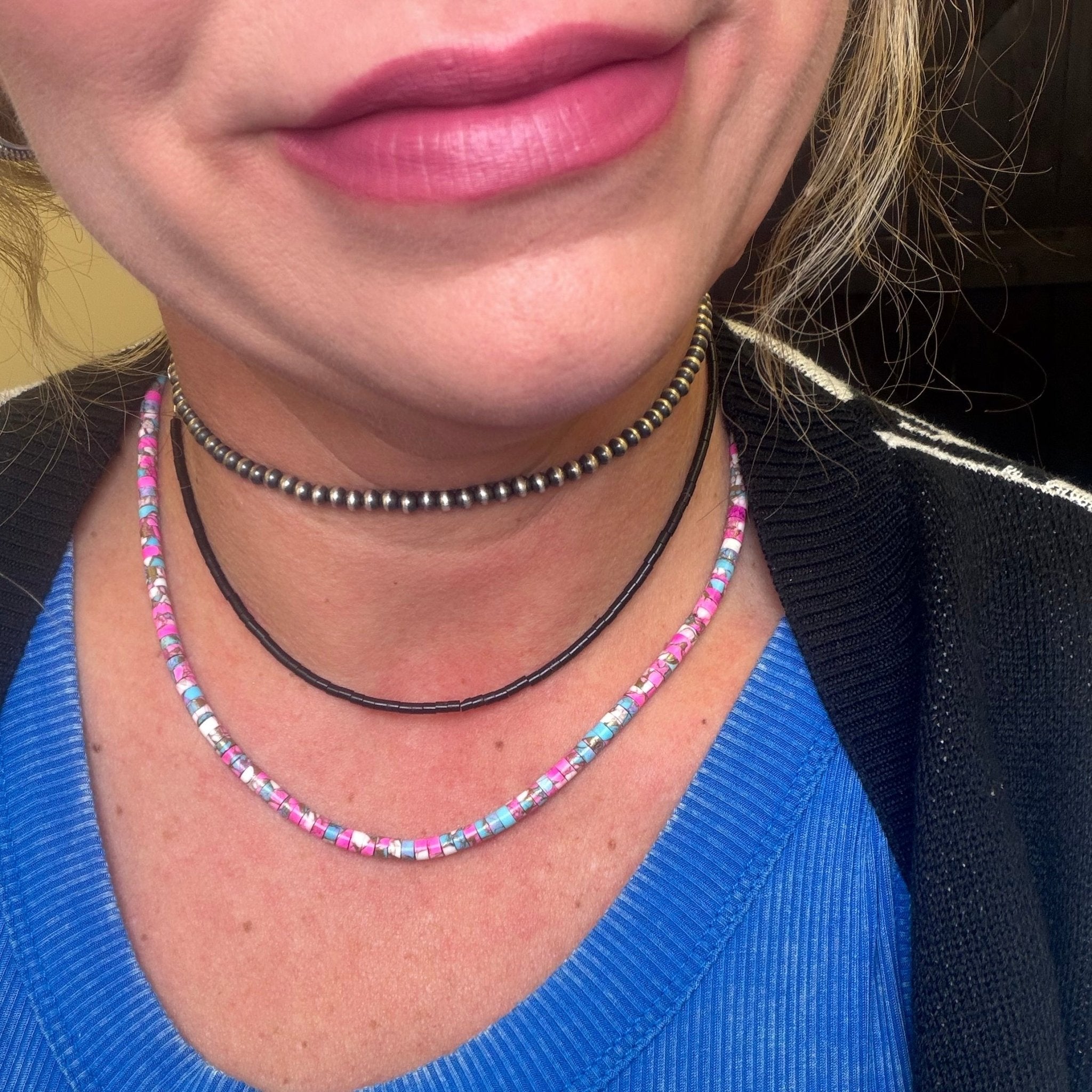 Black Jet Heishi Sterling Silver Necklace