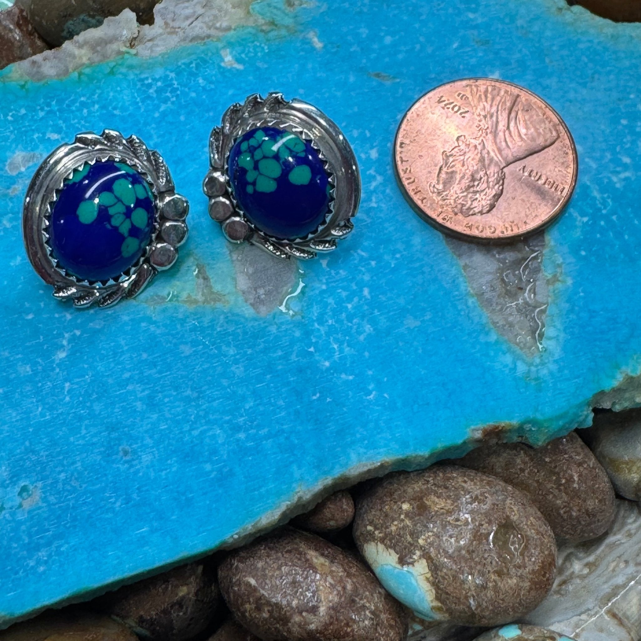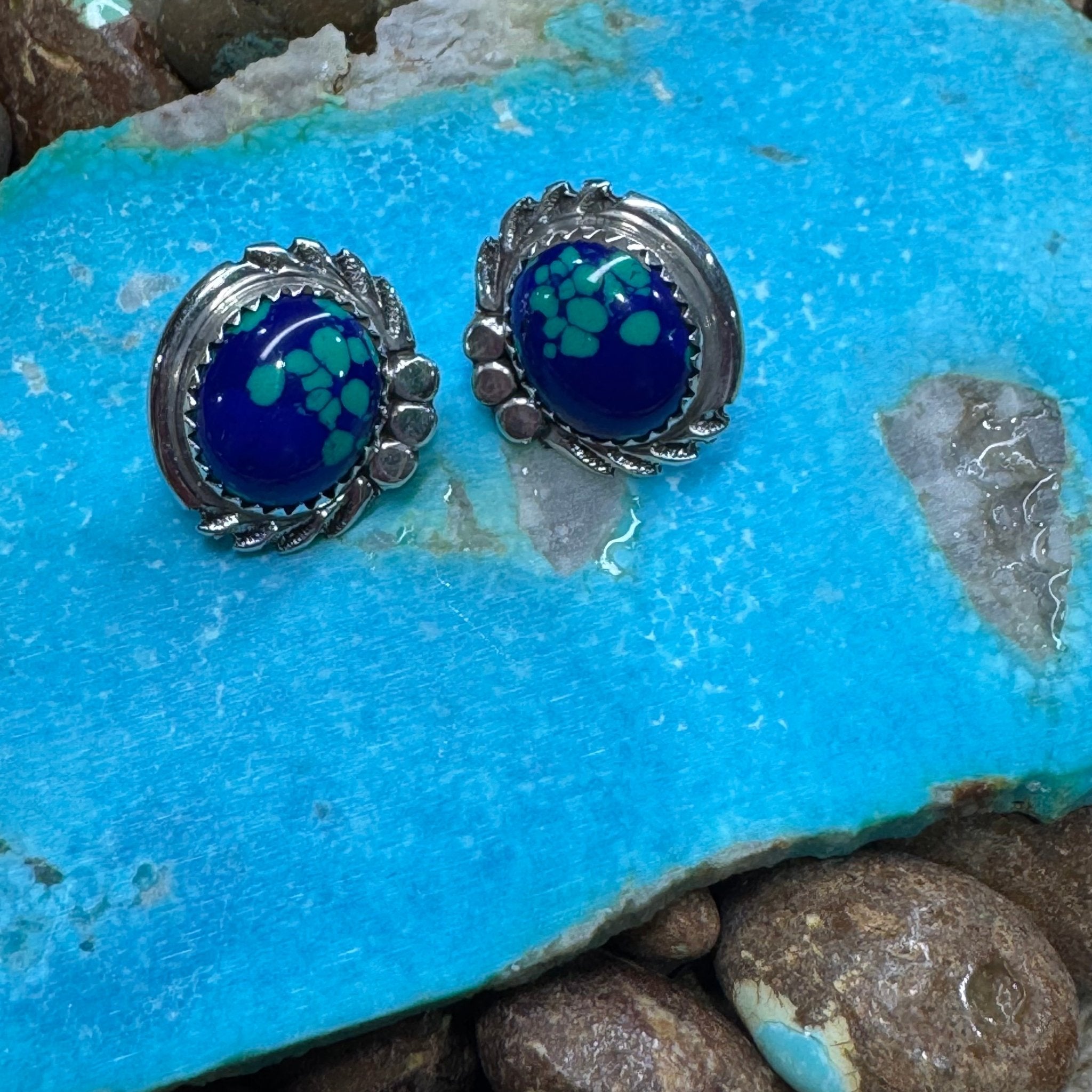 Blue Green Oval Post Stud Sterling Silver Earring