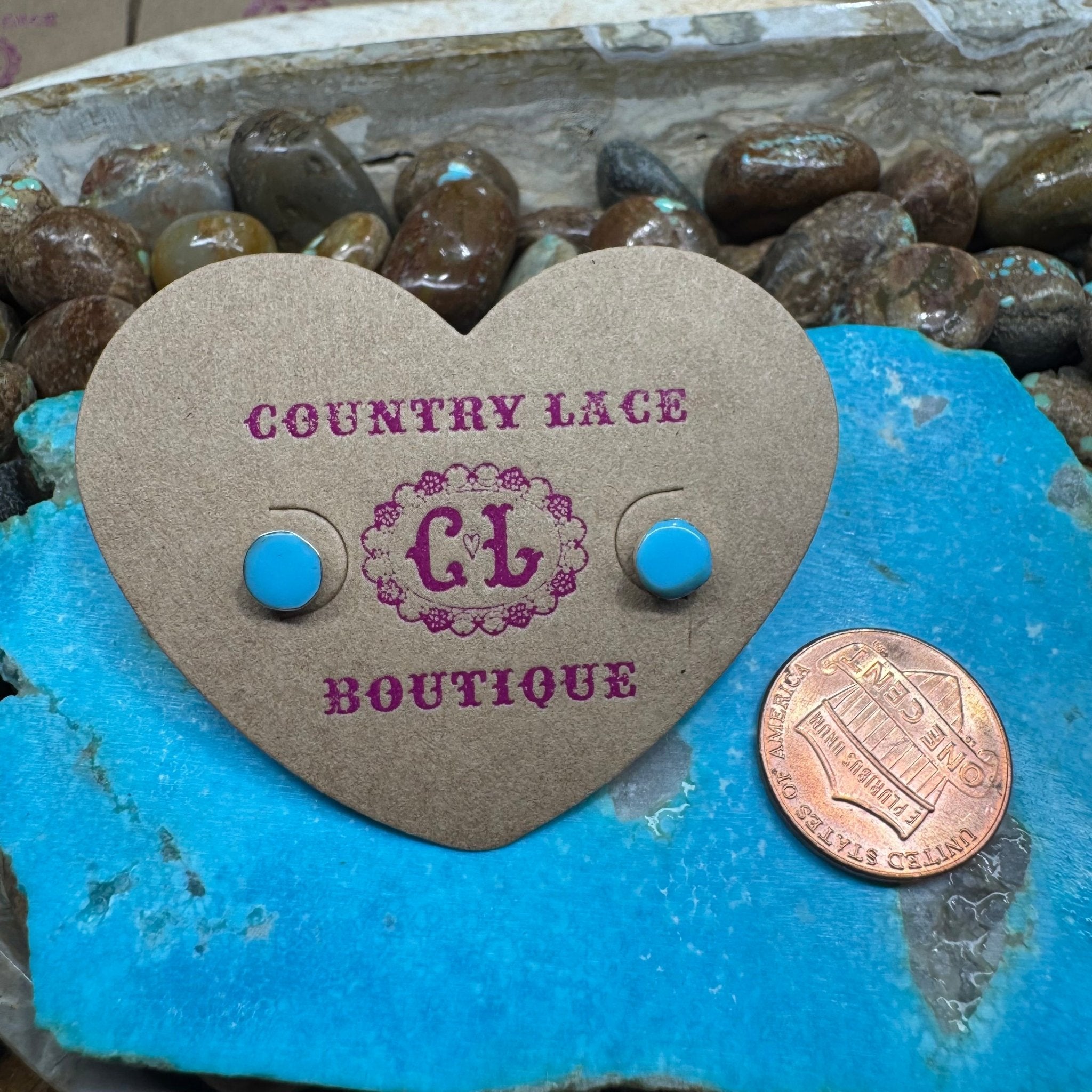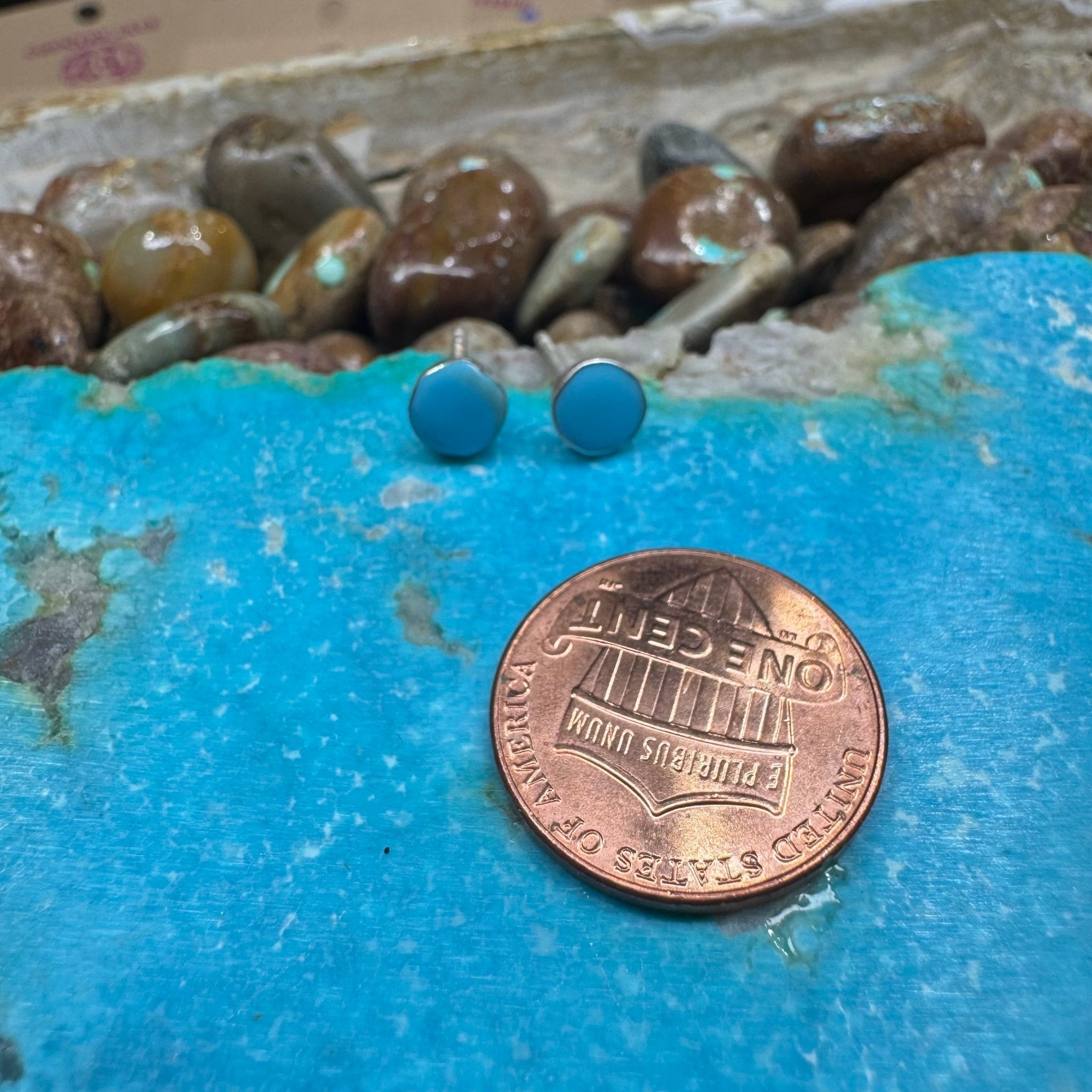 Blue Round Stud Post Sterling Silver Earring