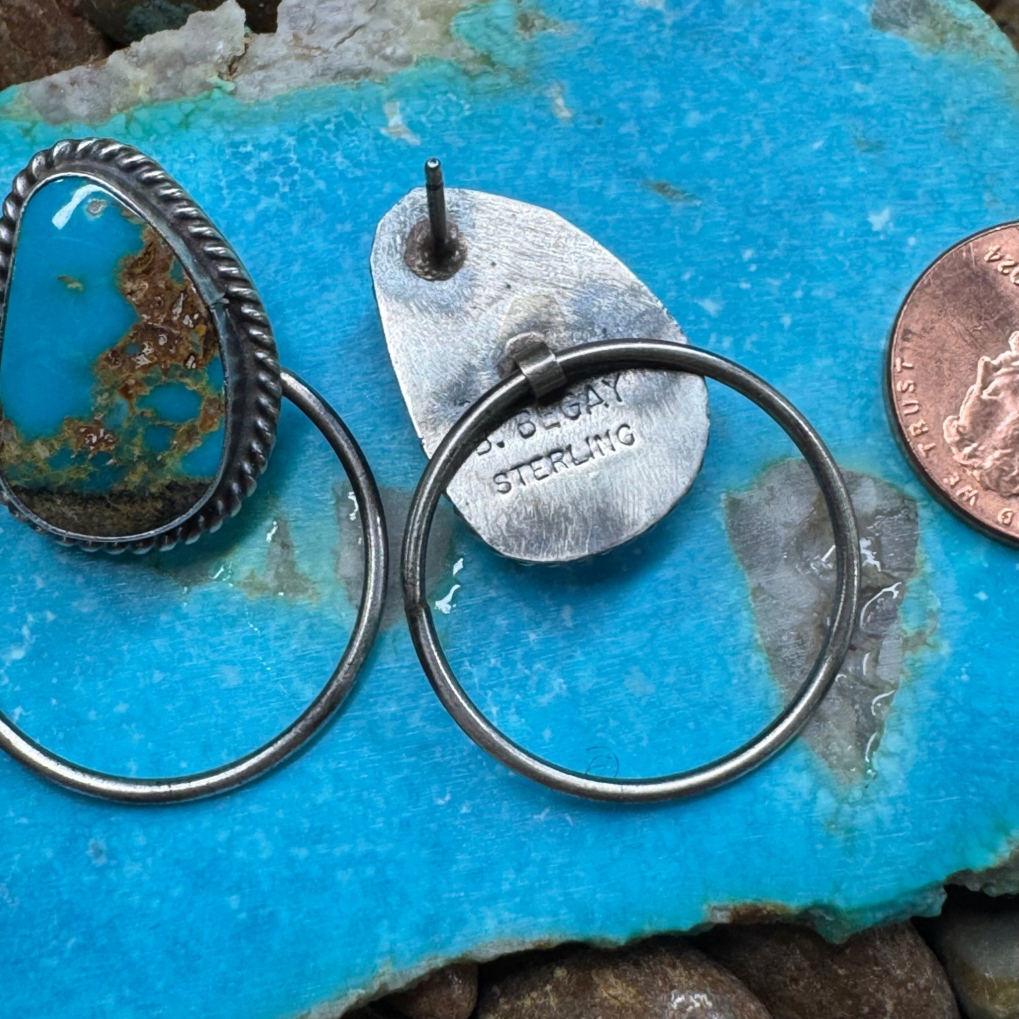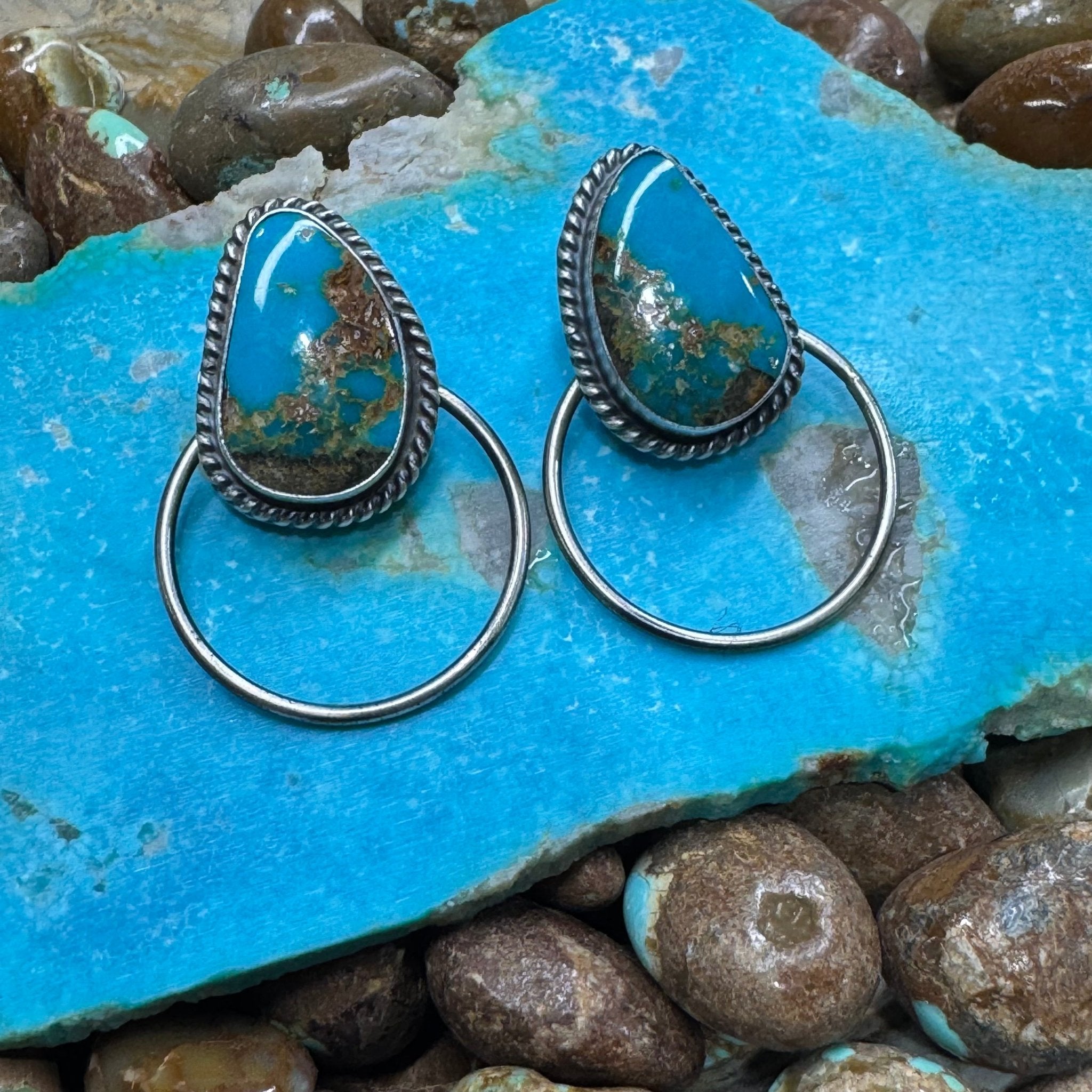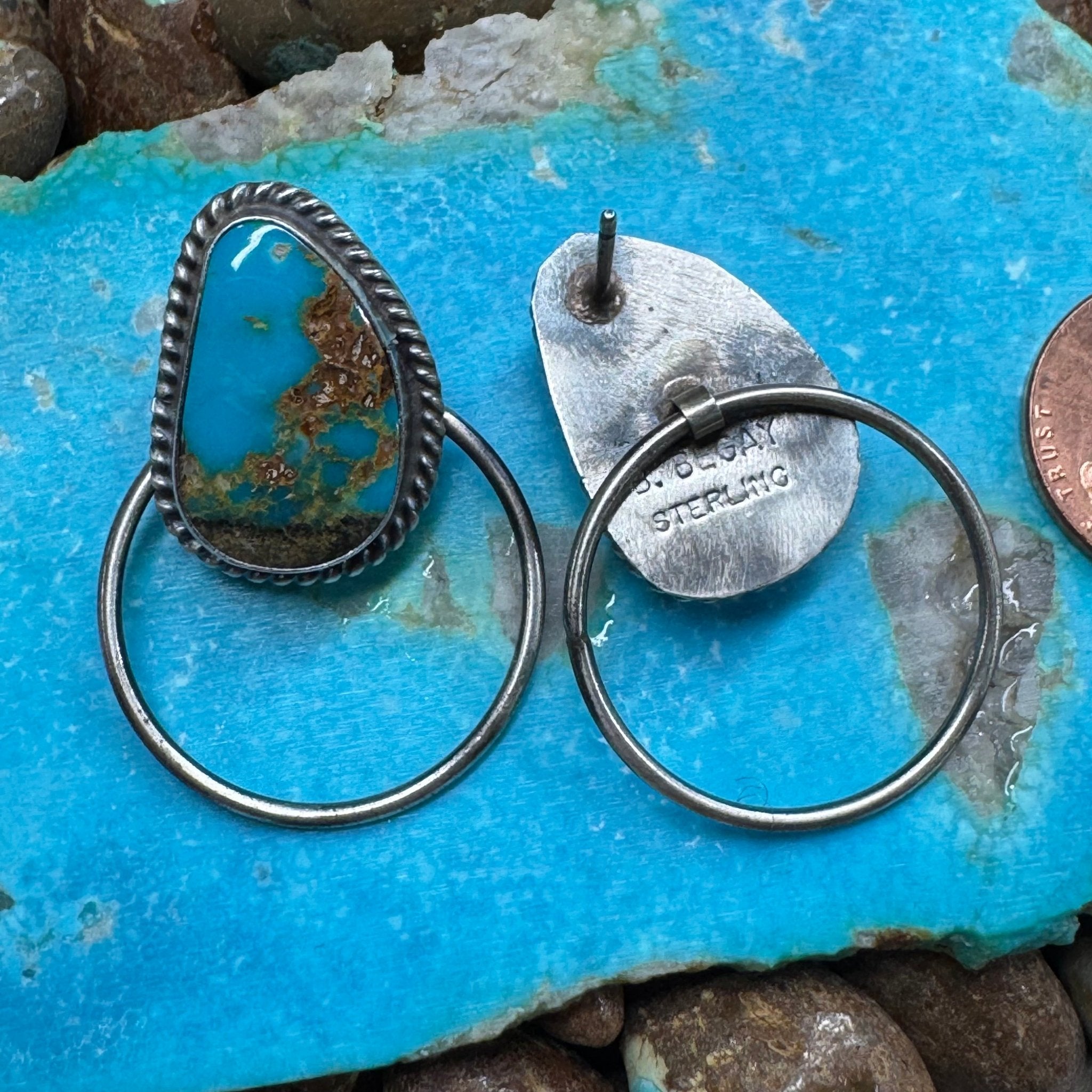 Blue Turquoise Post Hoop Sterling Silver Earring