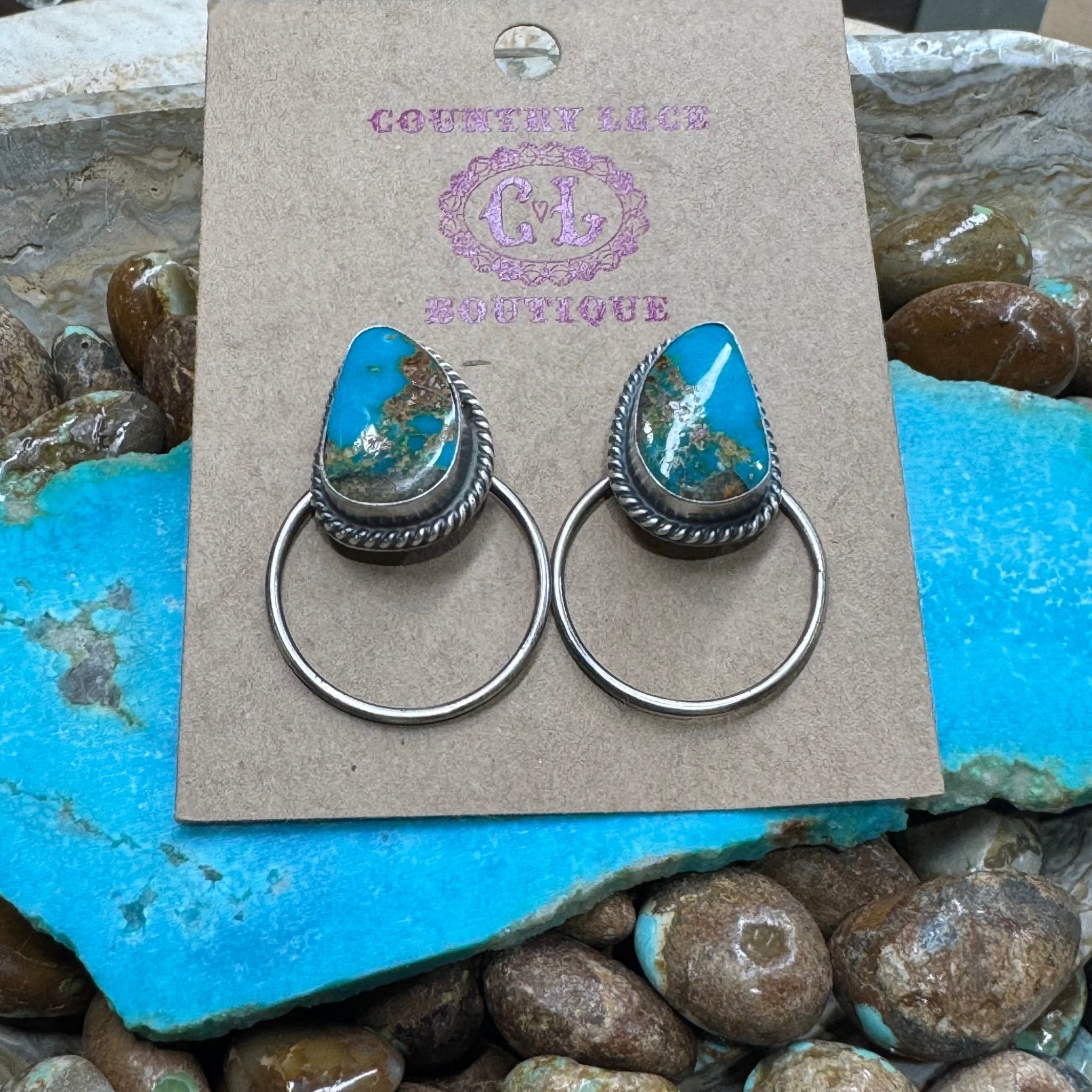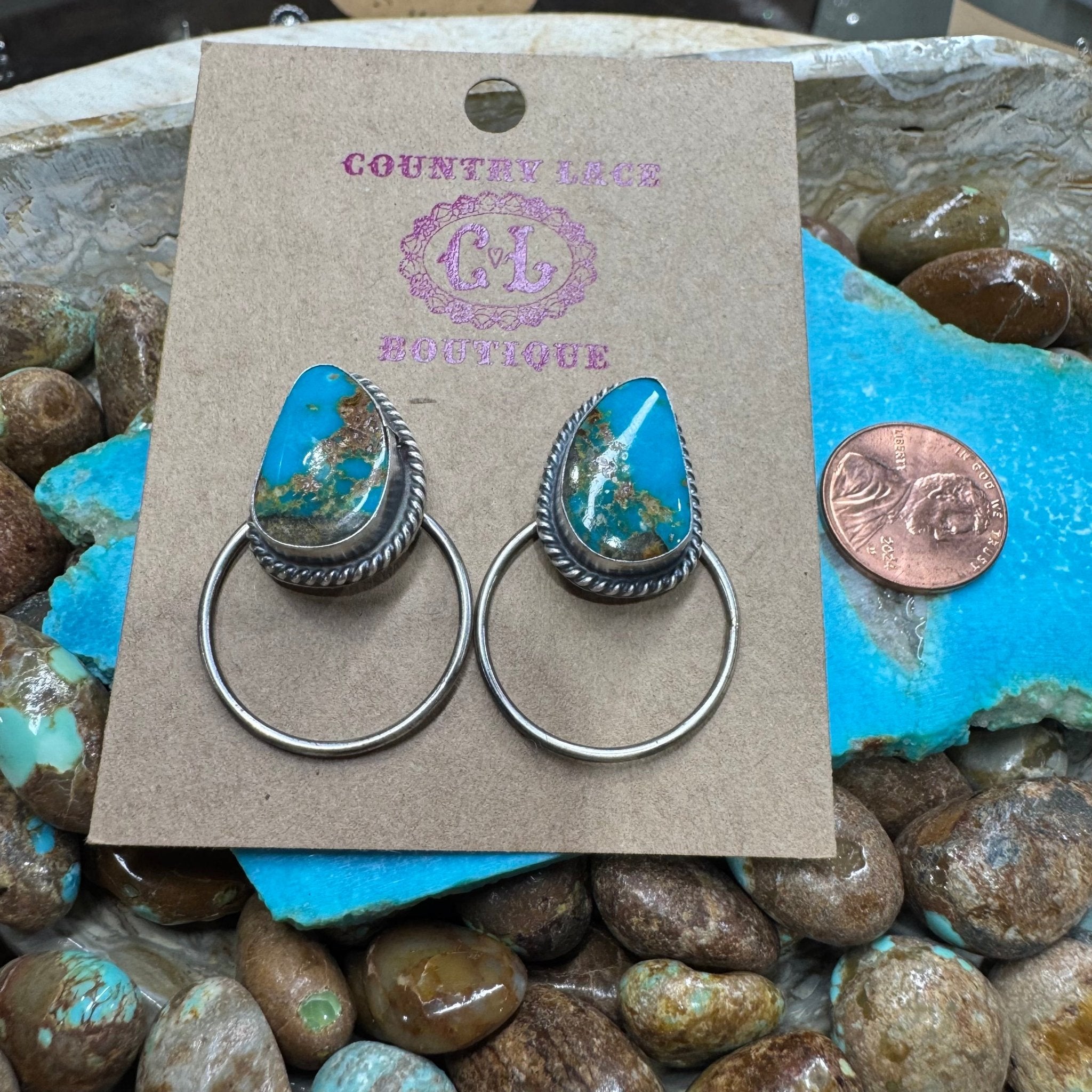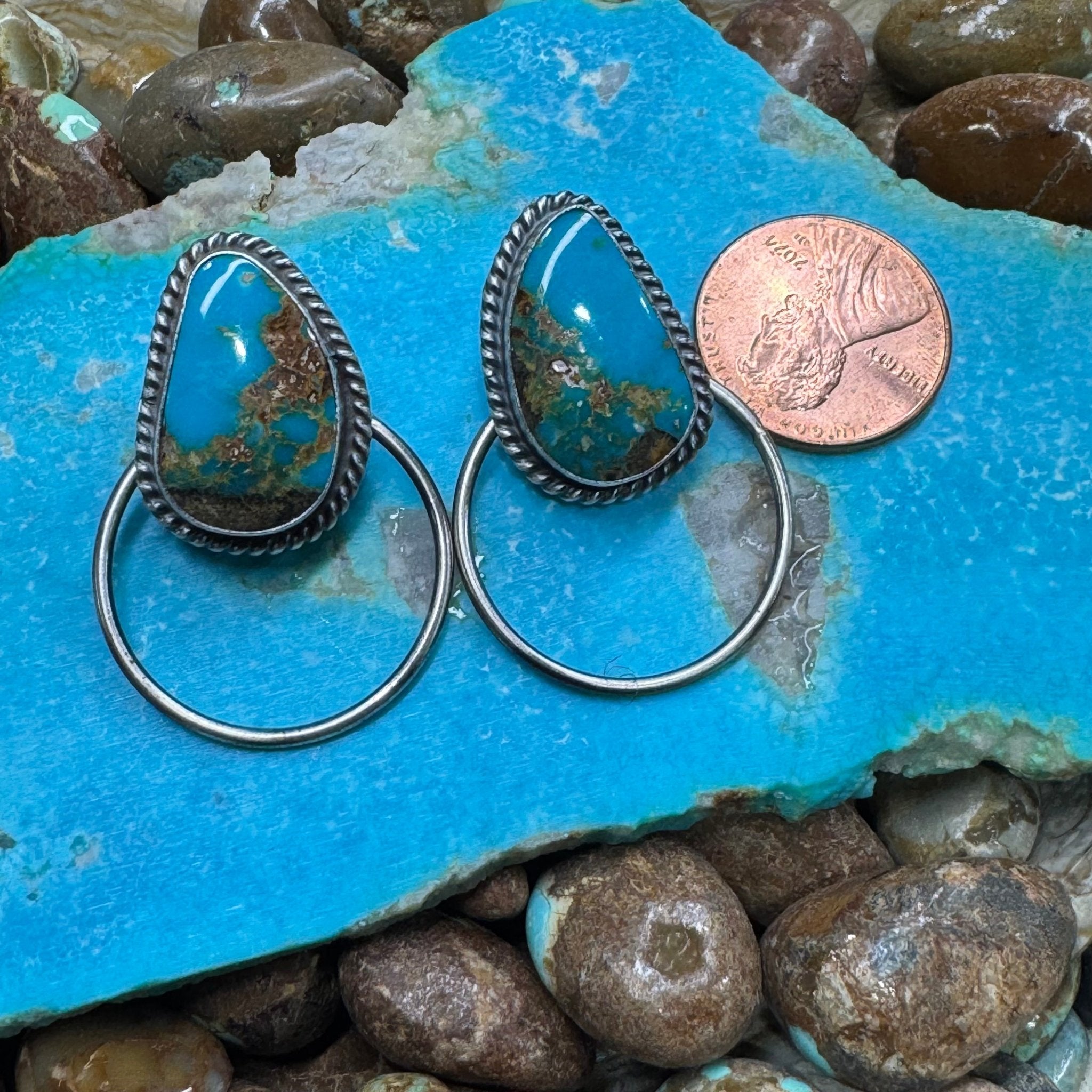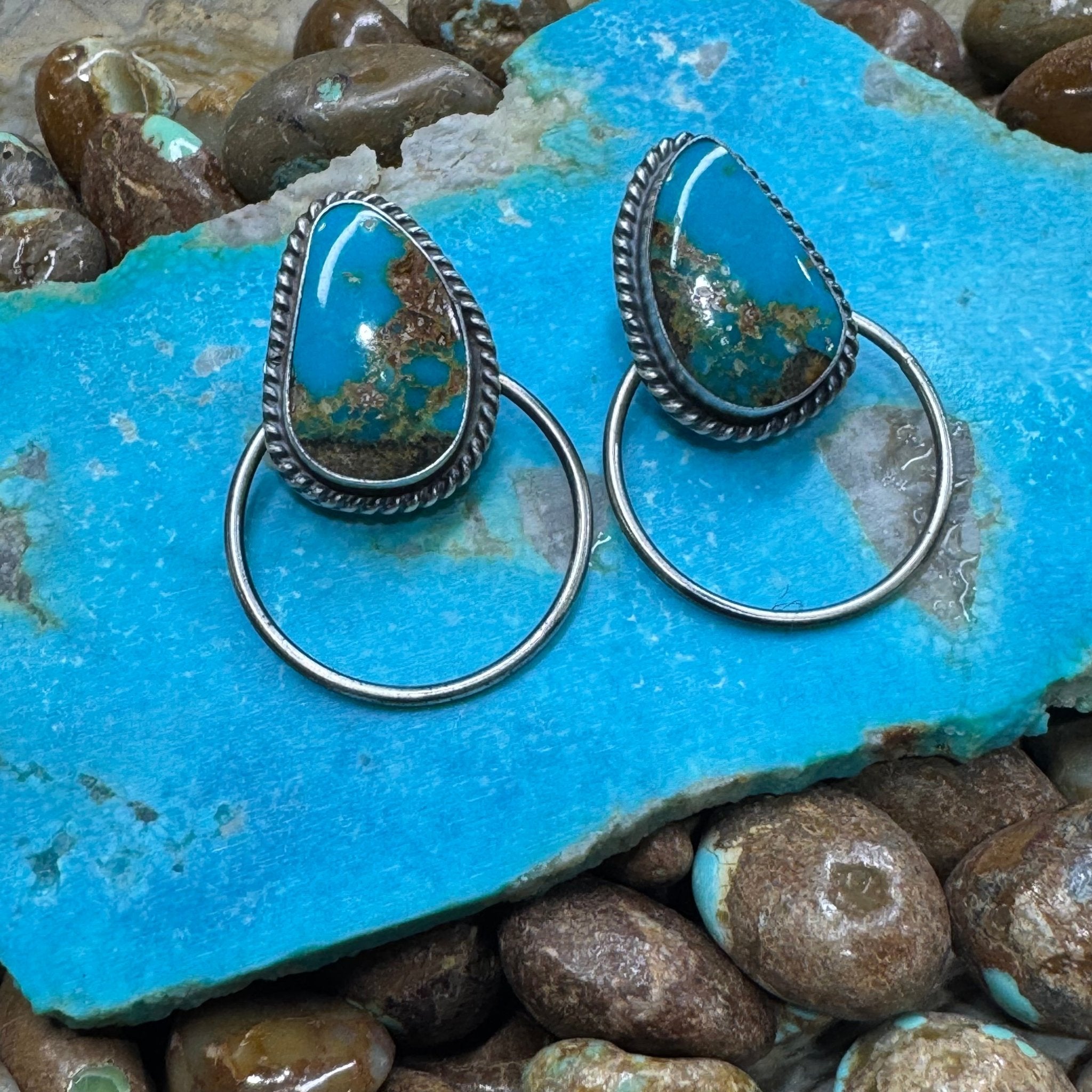 Blue Turquoise Post Hoop Sterling Silver Earring