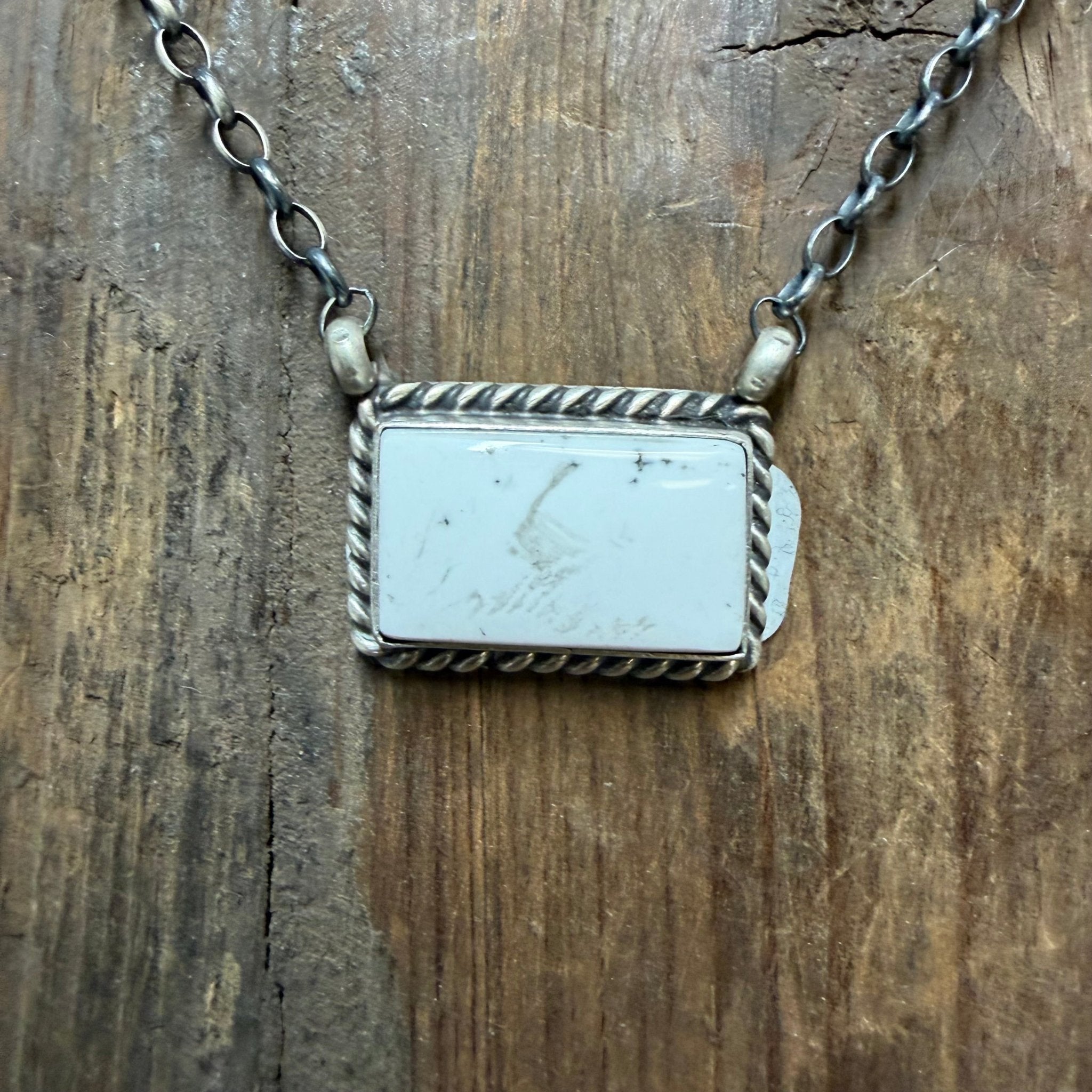 Chunky White Buffalo Bar Rope Detail Bar Sterling Silver Necklace