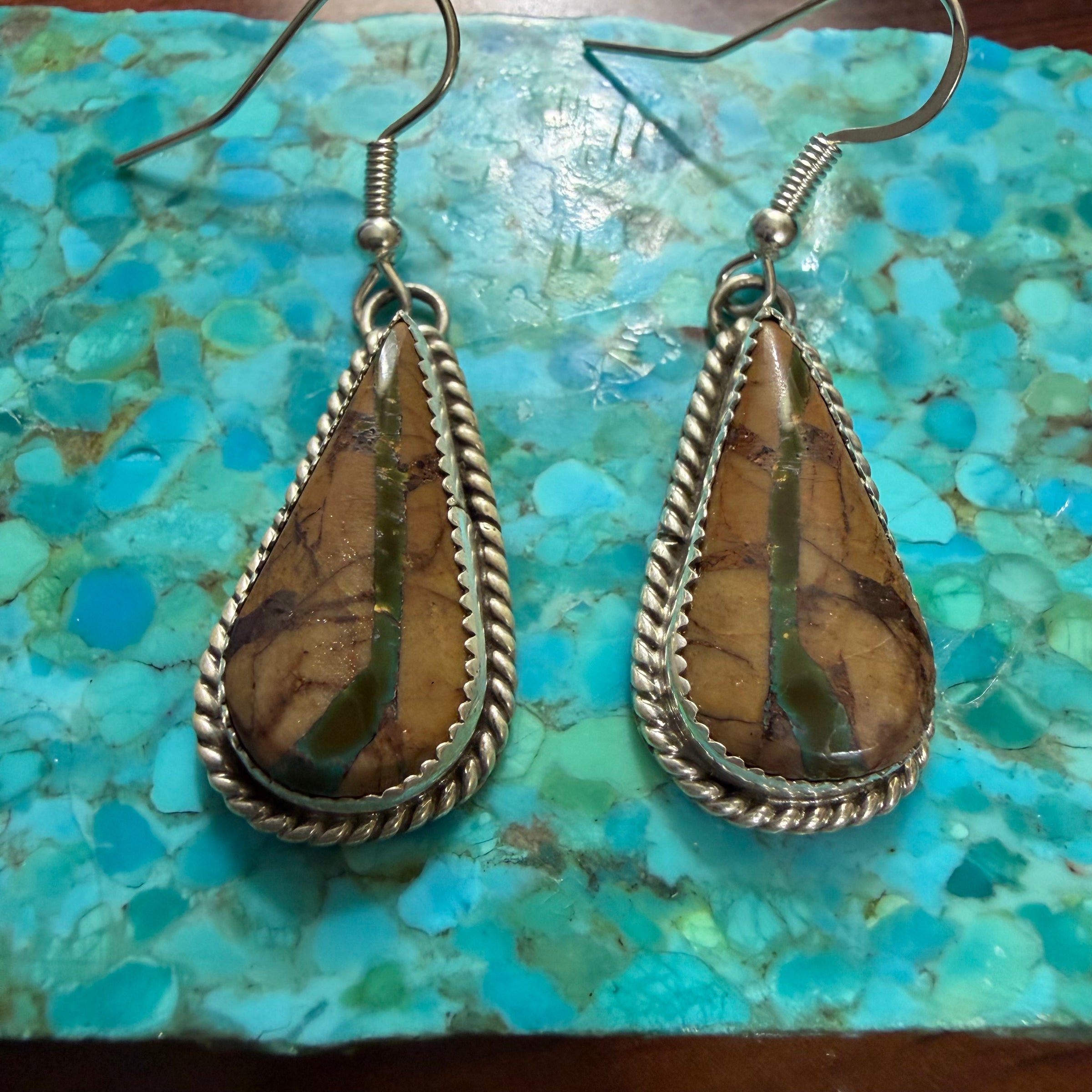 Gorgeous Boulder Royston Ribbon Sterling Silver French Hook Earrings