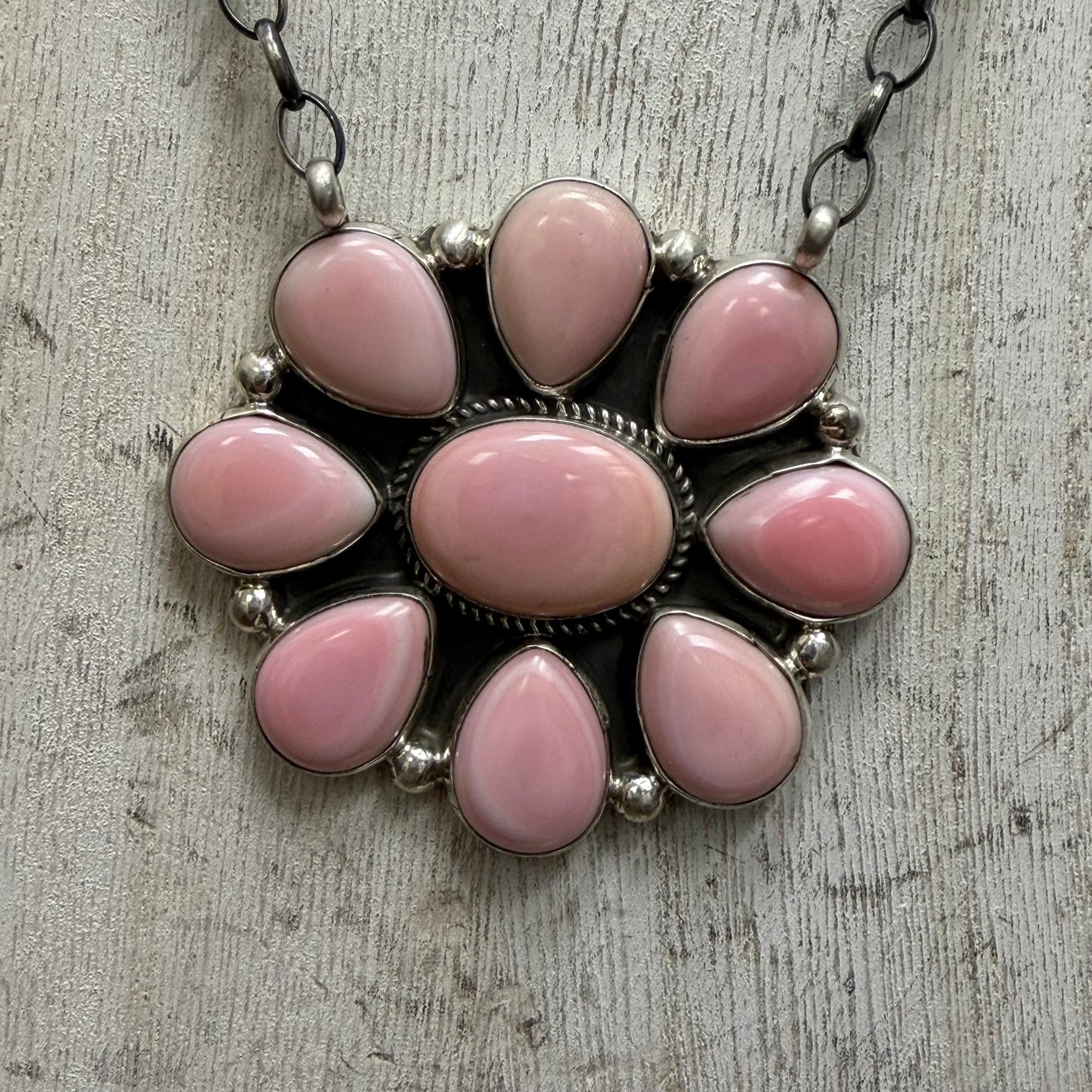 Huge Pink Conch Cluster Sterling Silver Necklace