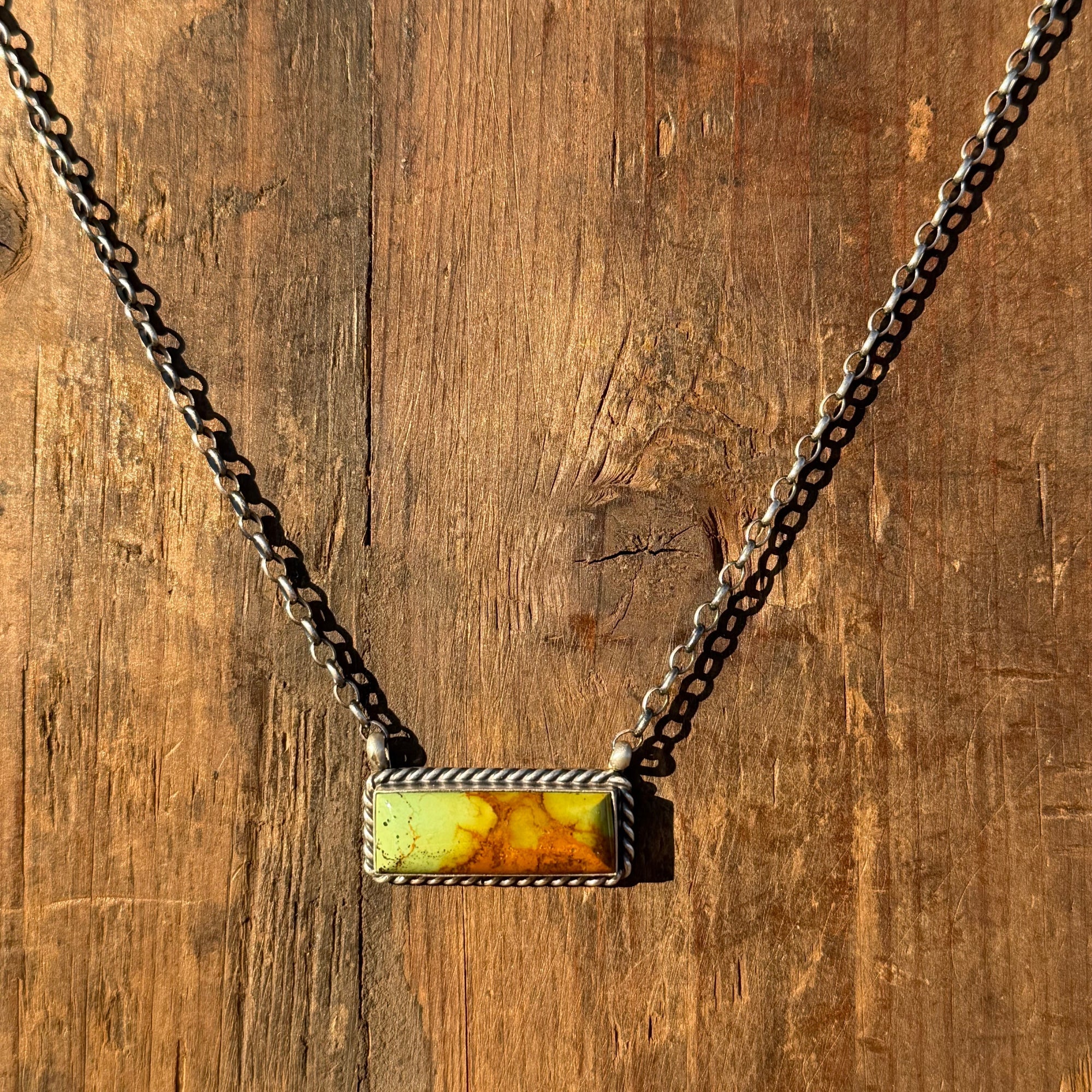Kingman Turquoise Rope Detail Bar Sterling Silver Necklace