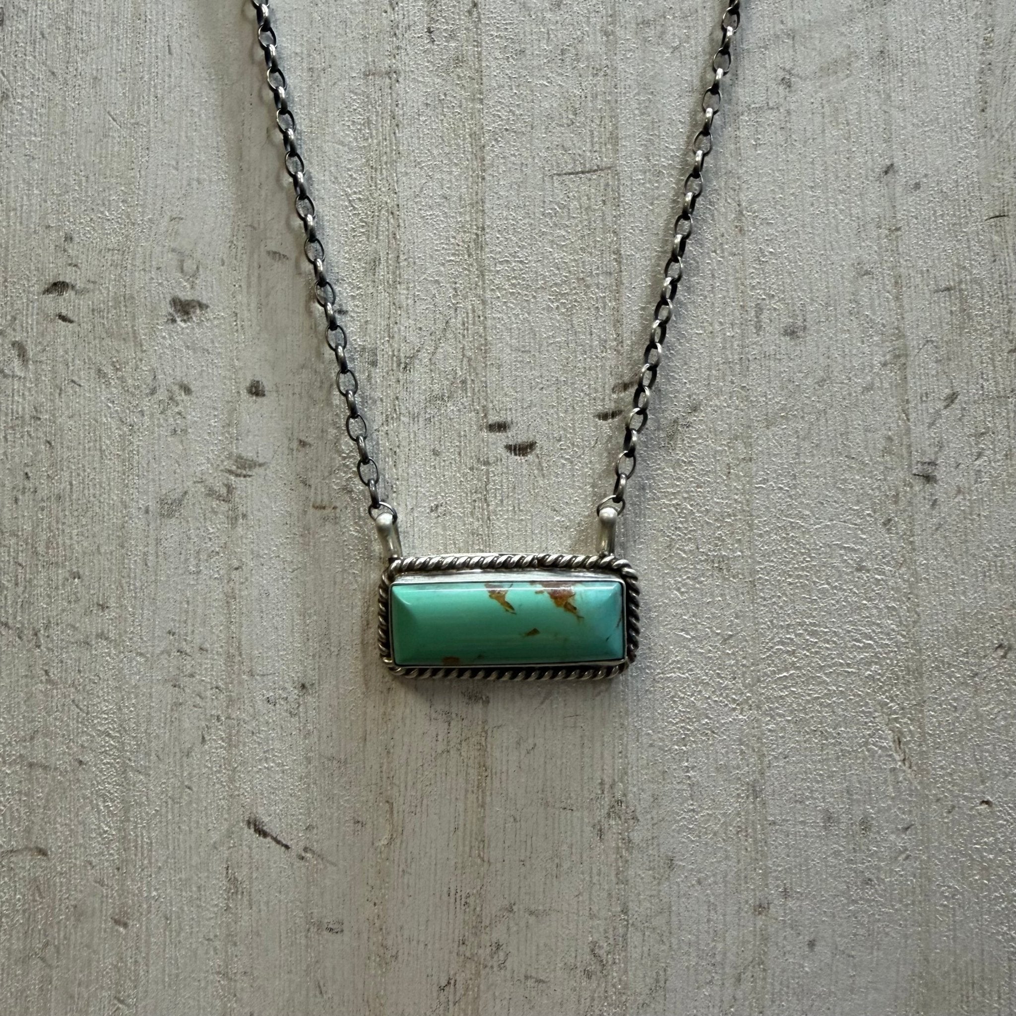 Kingman Turquoise Rope Detail Bar Sterling Silver Necklace
