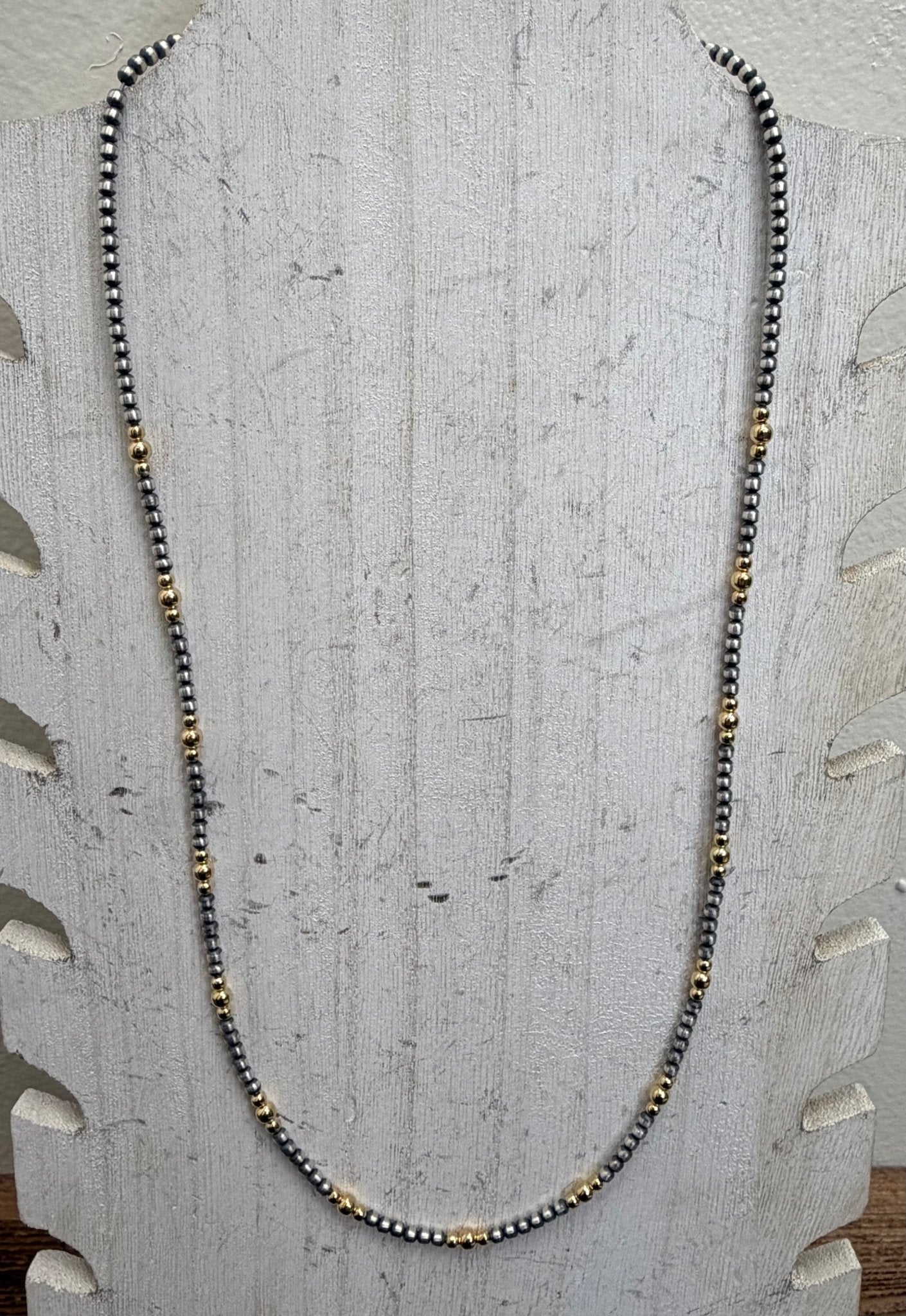 Patterned 24 inch 3mm Navajo Pearl With 3 &5mm Gold Plated Pearls Sterling Silver Necklace
