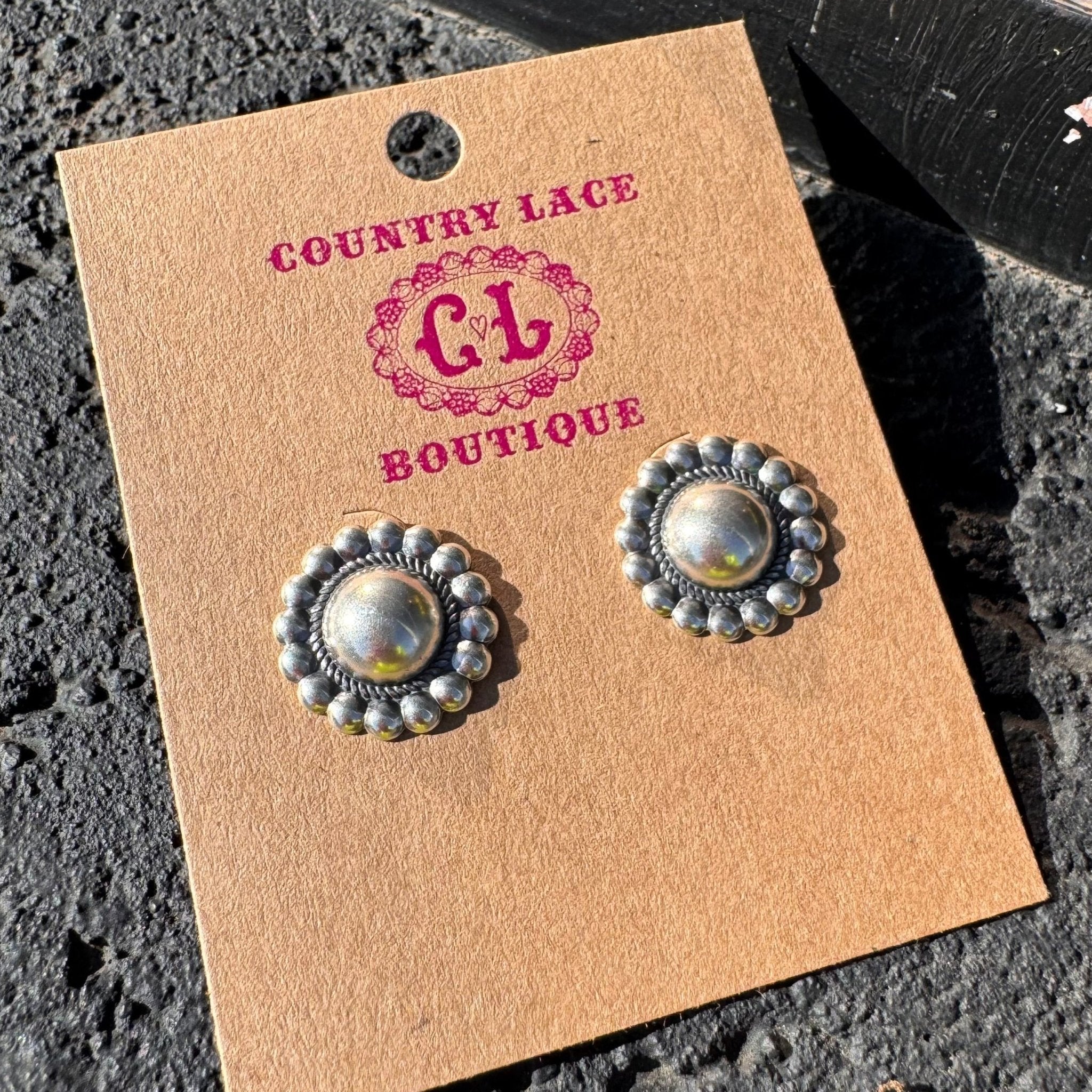 Shiny Concho Post Stud Sterling Silver Earring