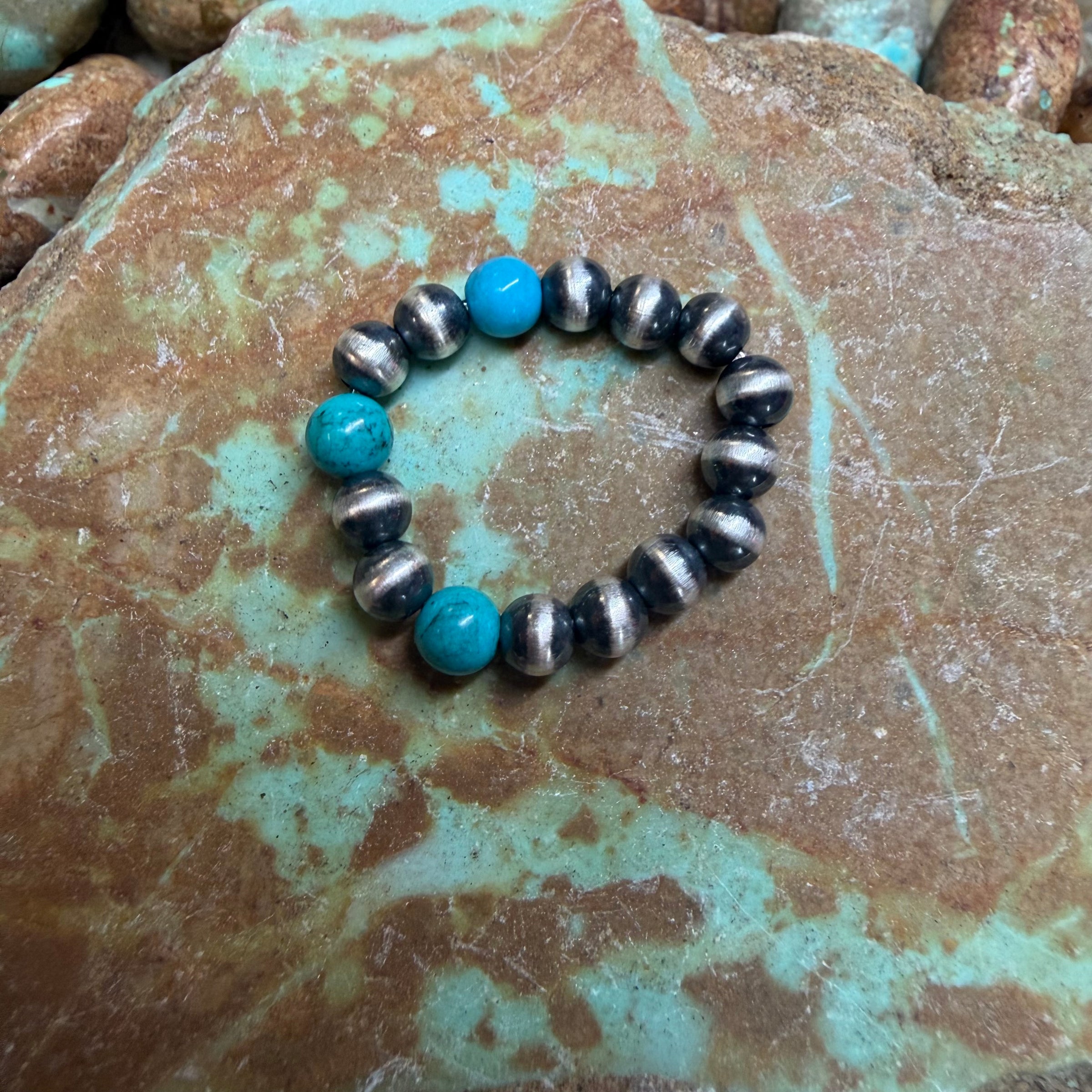 Stretchy Turquoise Pearl Sterling Silver Ring