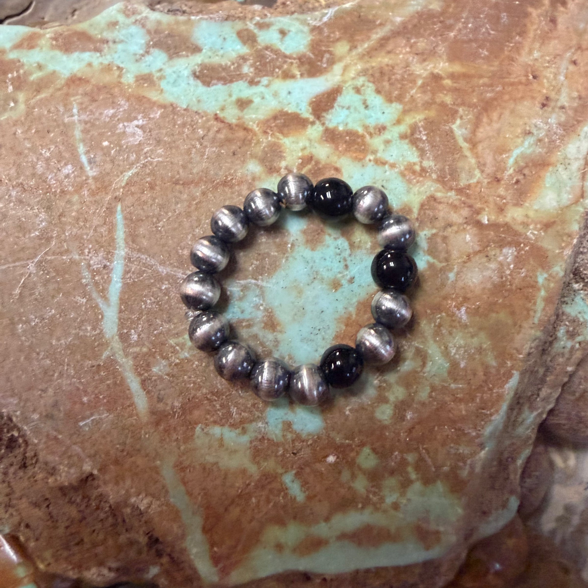 Stretchy Turquoise Pearl Sterling Silver Ring