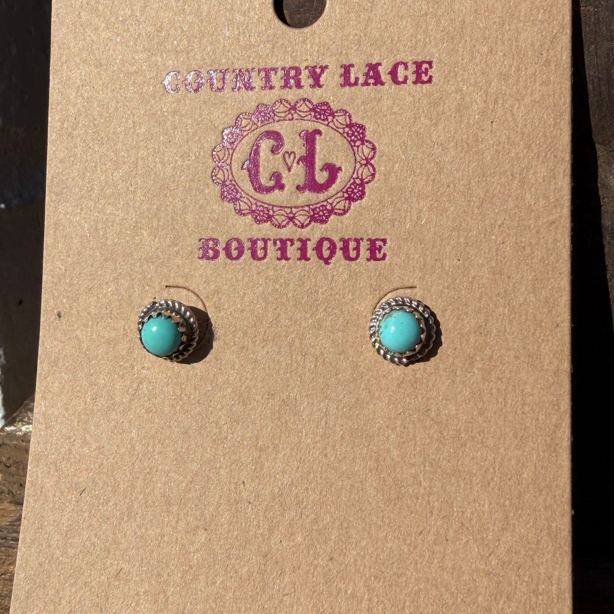 Super Cute Turquoise with Detail Stud Post Sterling Silver Earring