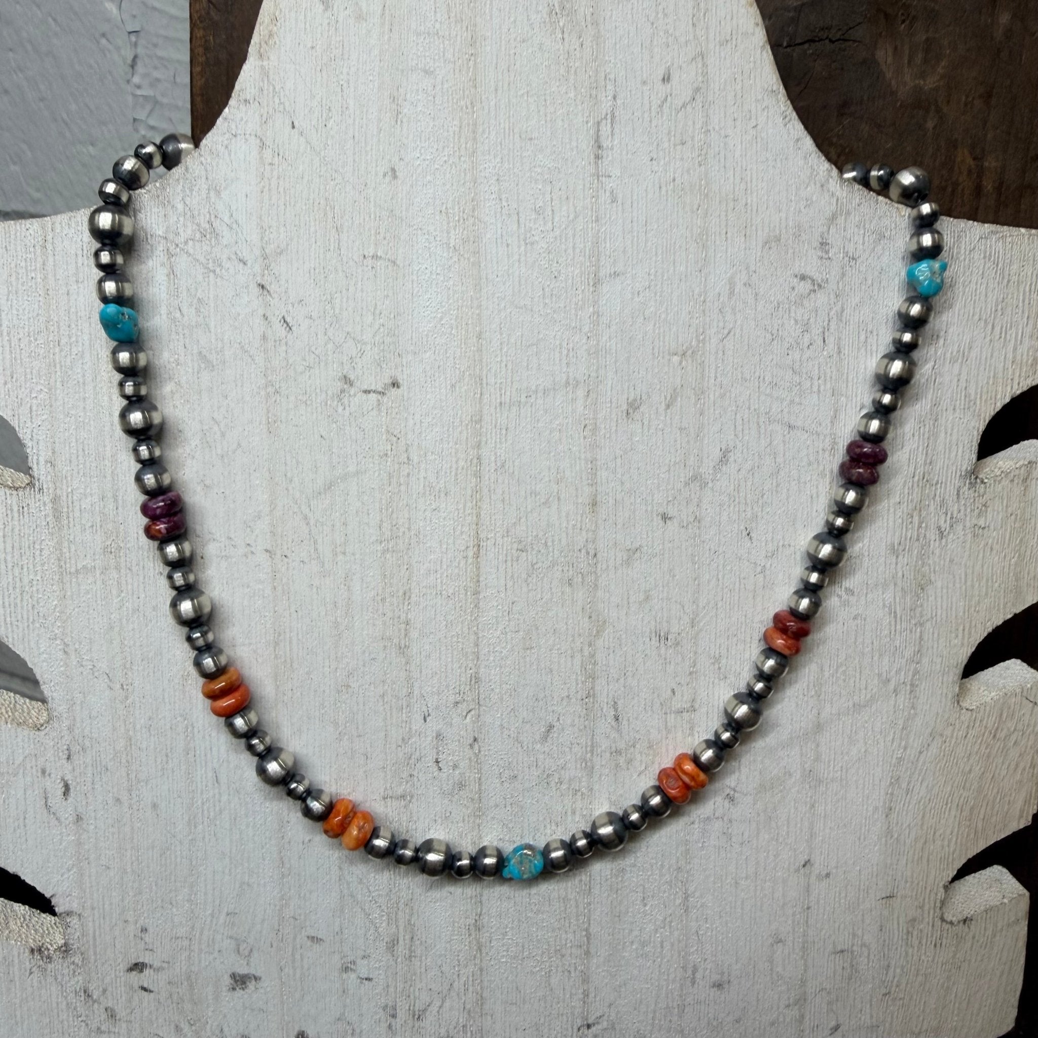 Unique 16 inch Multi & Navajo Pearls Patterned Sterling Silver Necklace