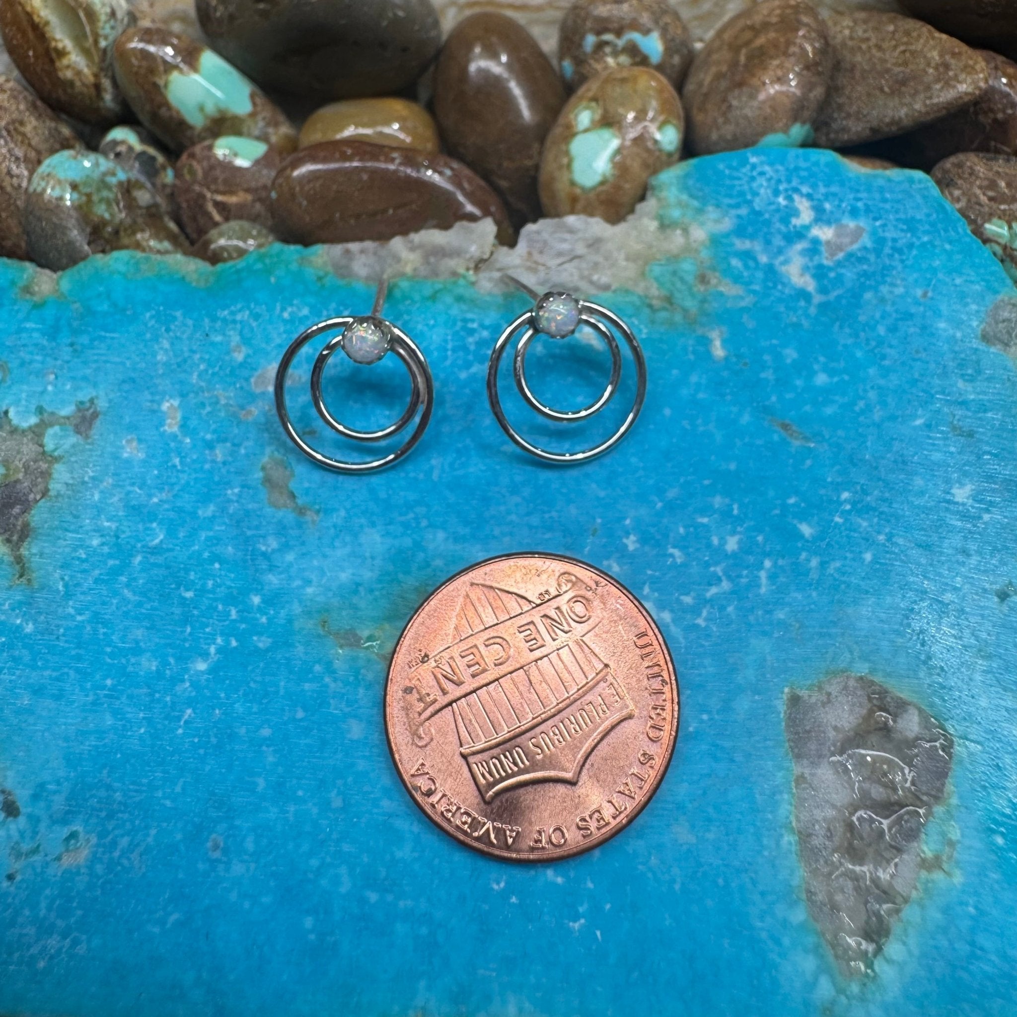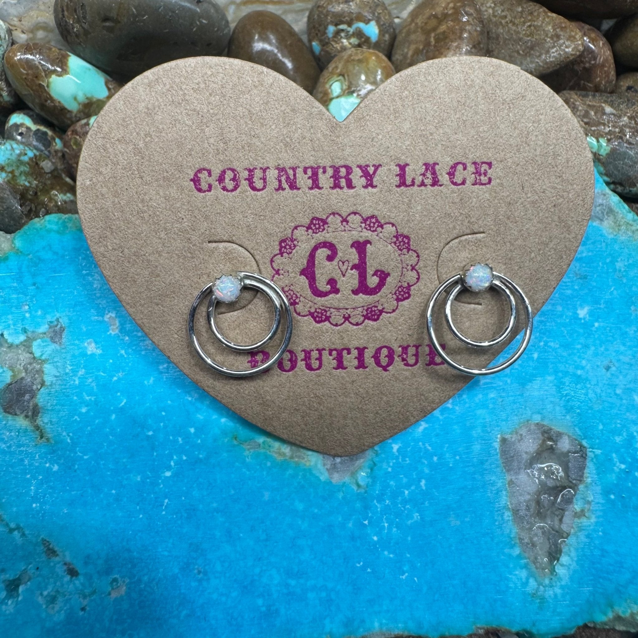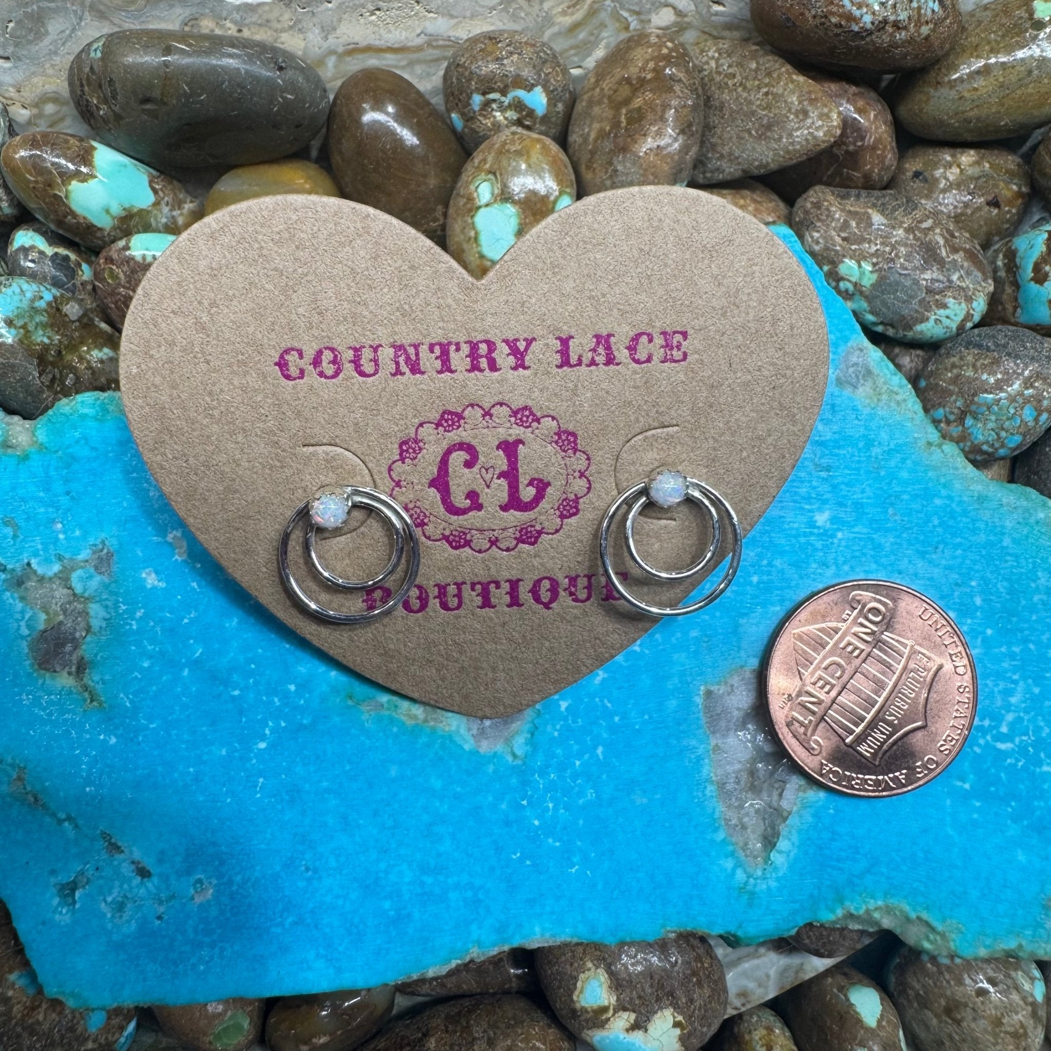 White Opal Flat Double Hoop Post Sterling Silver Earring