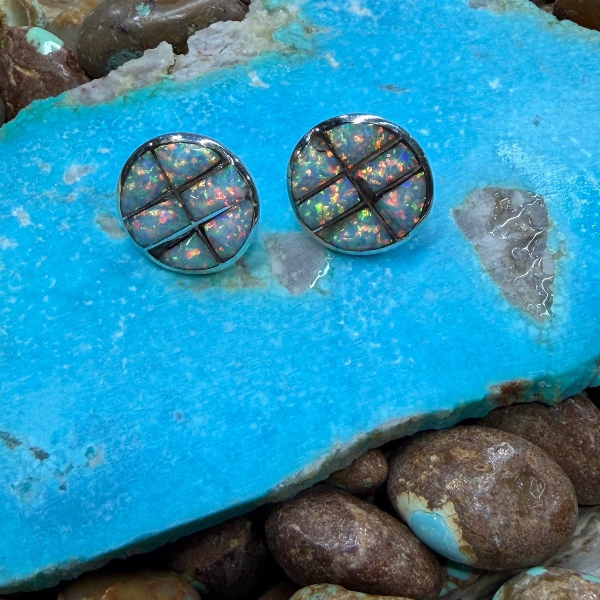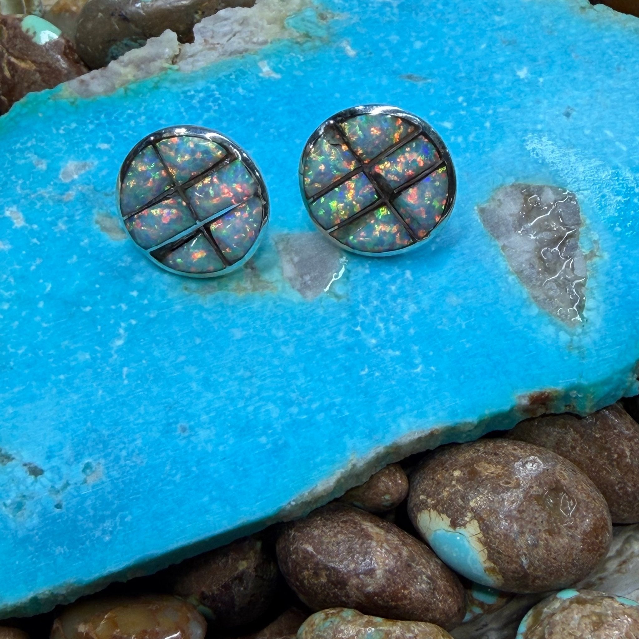 White Opal Inlay Round Post Sterling Silver Earring