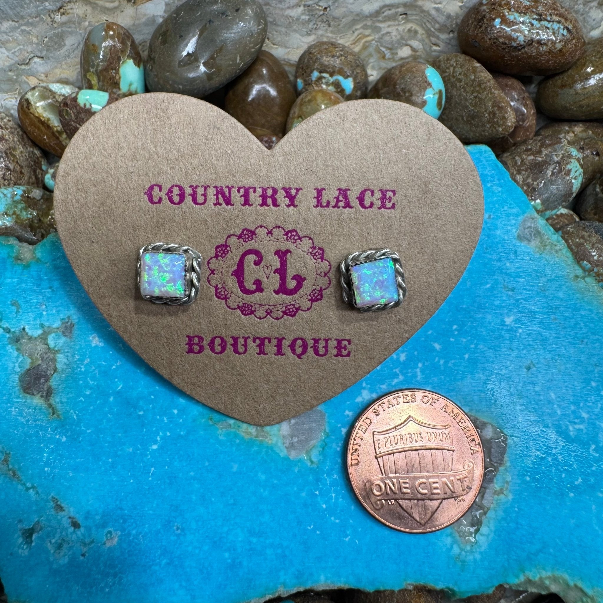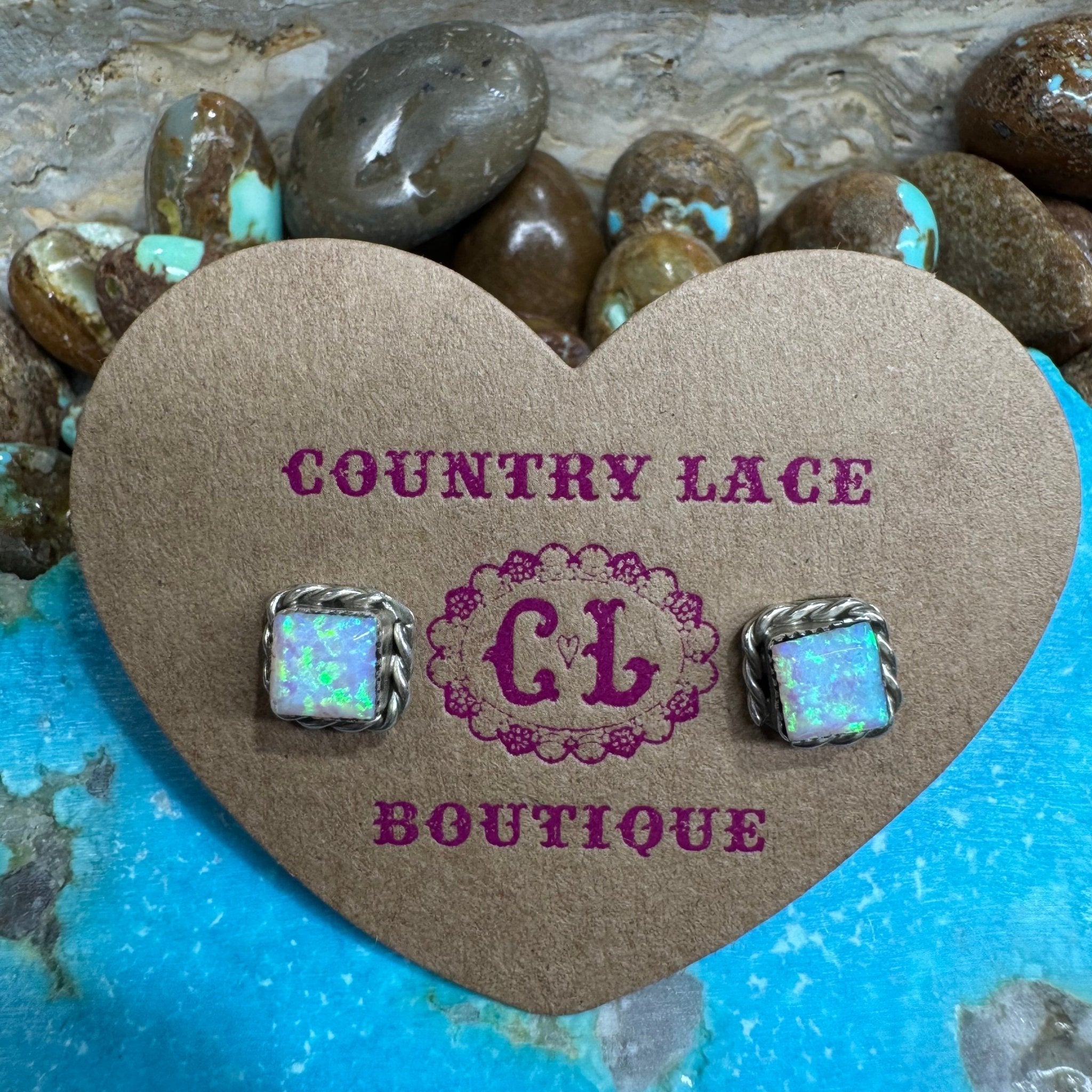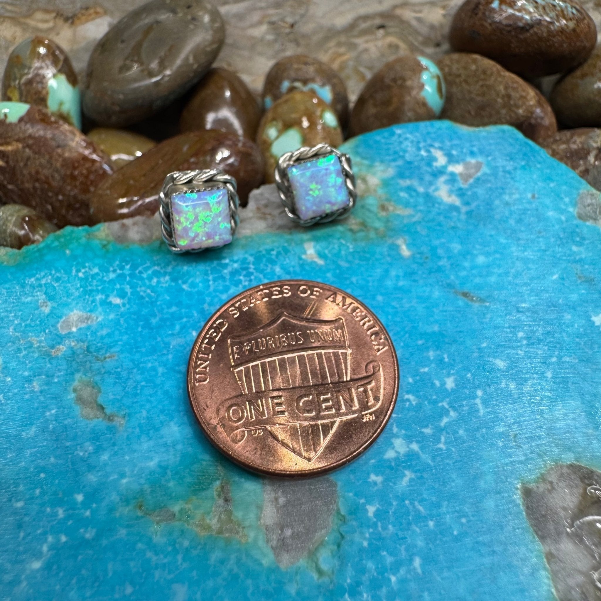 White Opal Post Stud Sterling Silver Earring