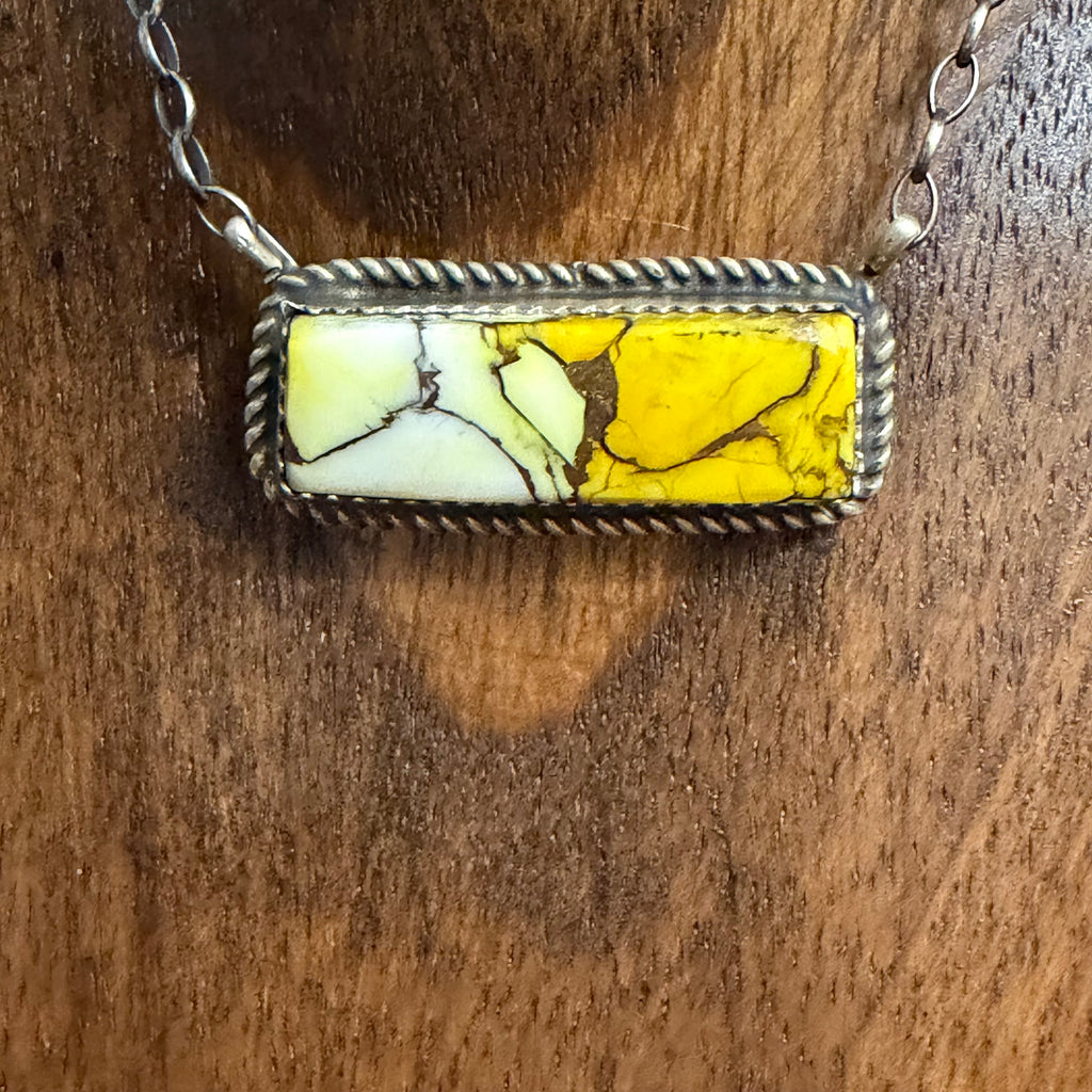 Gorgeous Dainty Kingman Turquoise Rope Detail Bar Sterling Silver Necklace