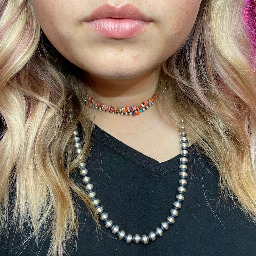 14 inch 3mm Navajo Pearl w/ Orange, Blue, and White Opal Sterling Silver Necklace