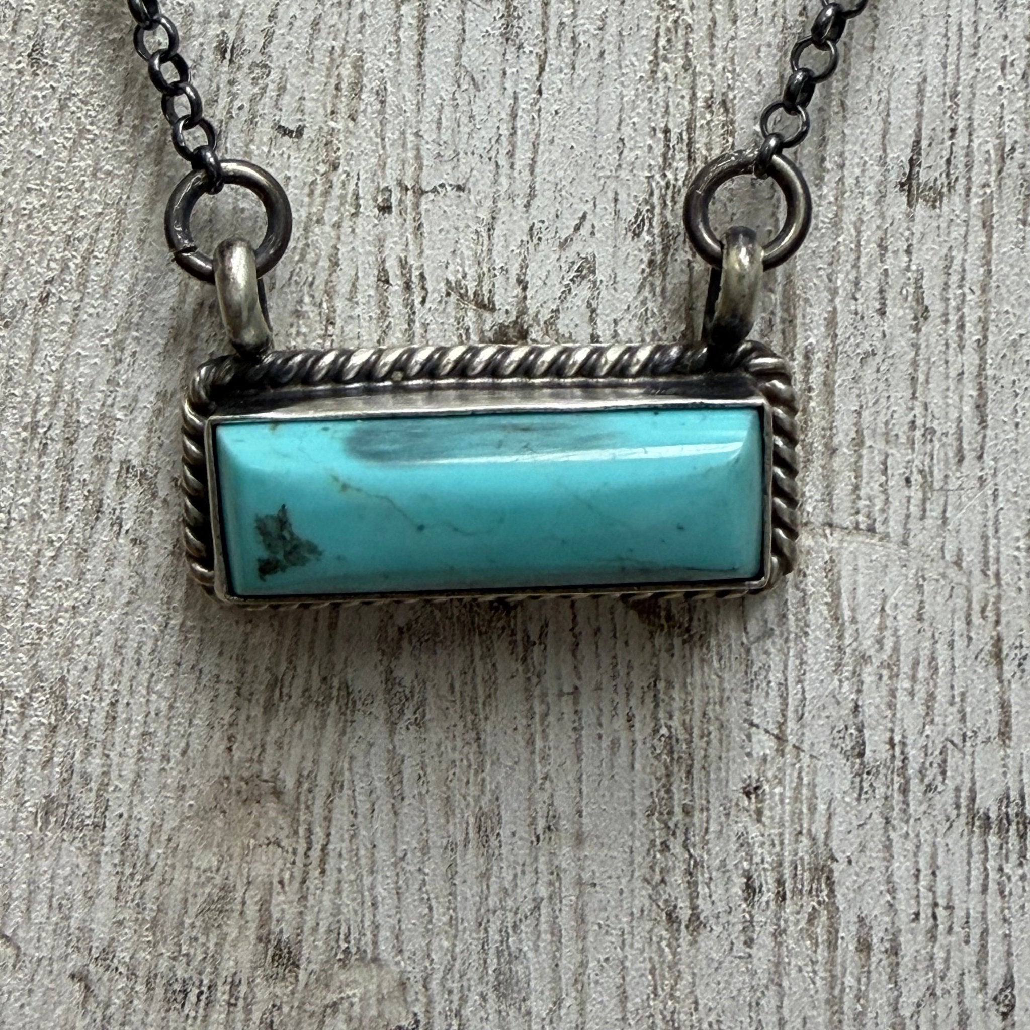 Dainty Kingman Turquoise Rope Detail Bar Sterling Silver Necklace