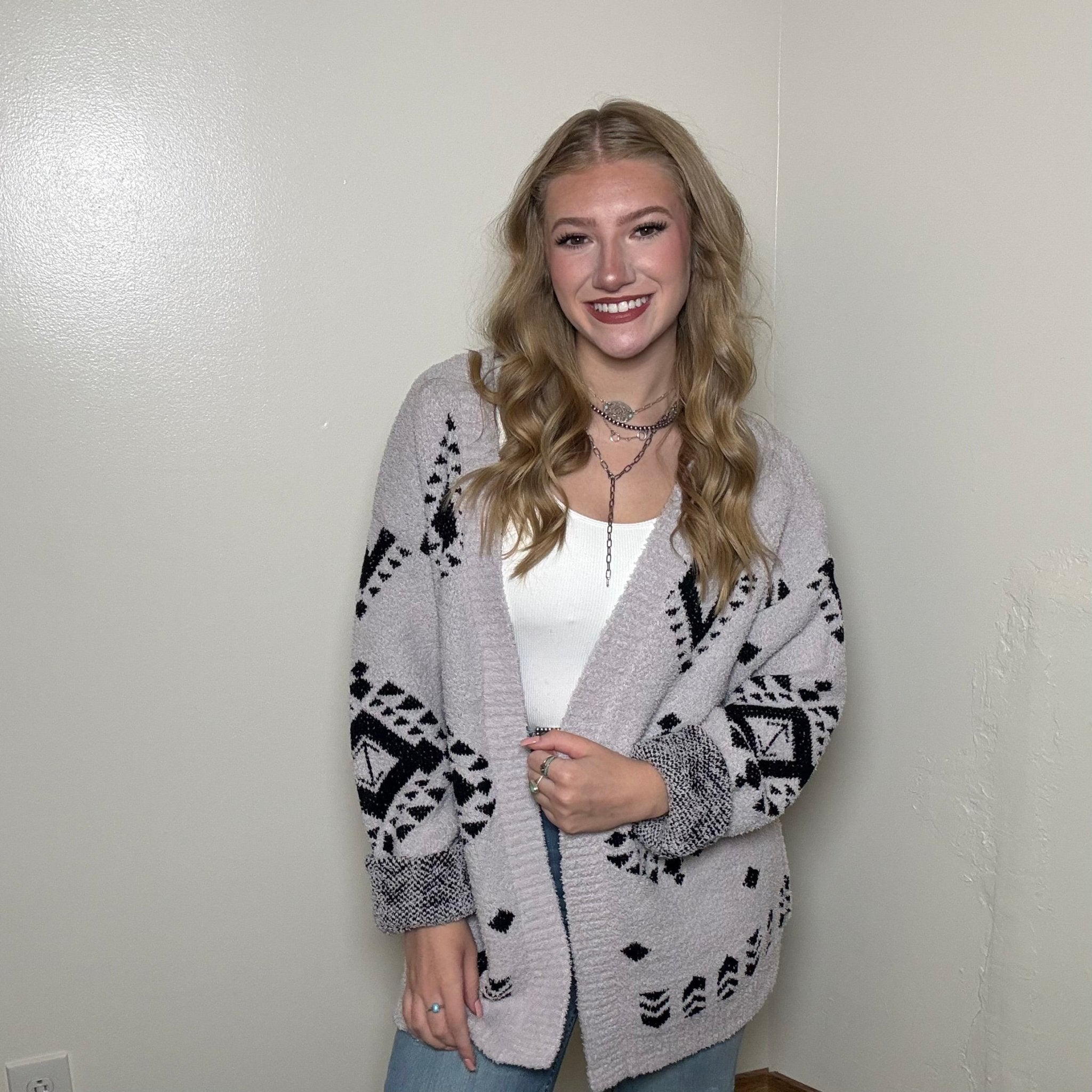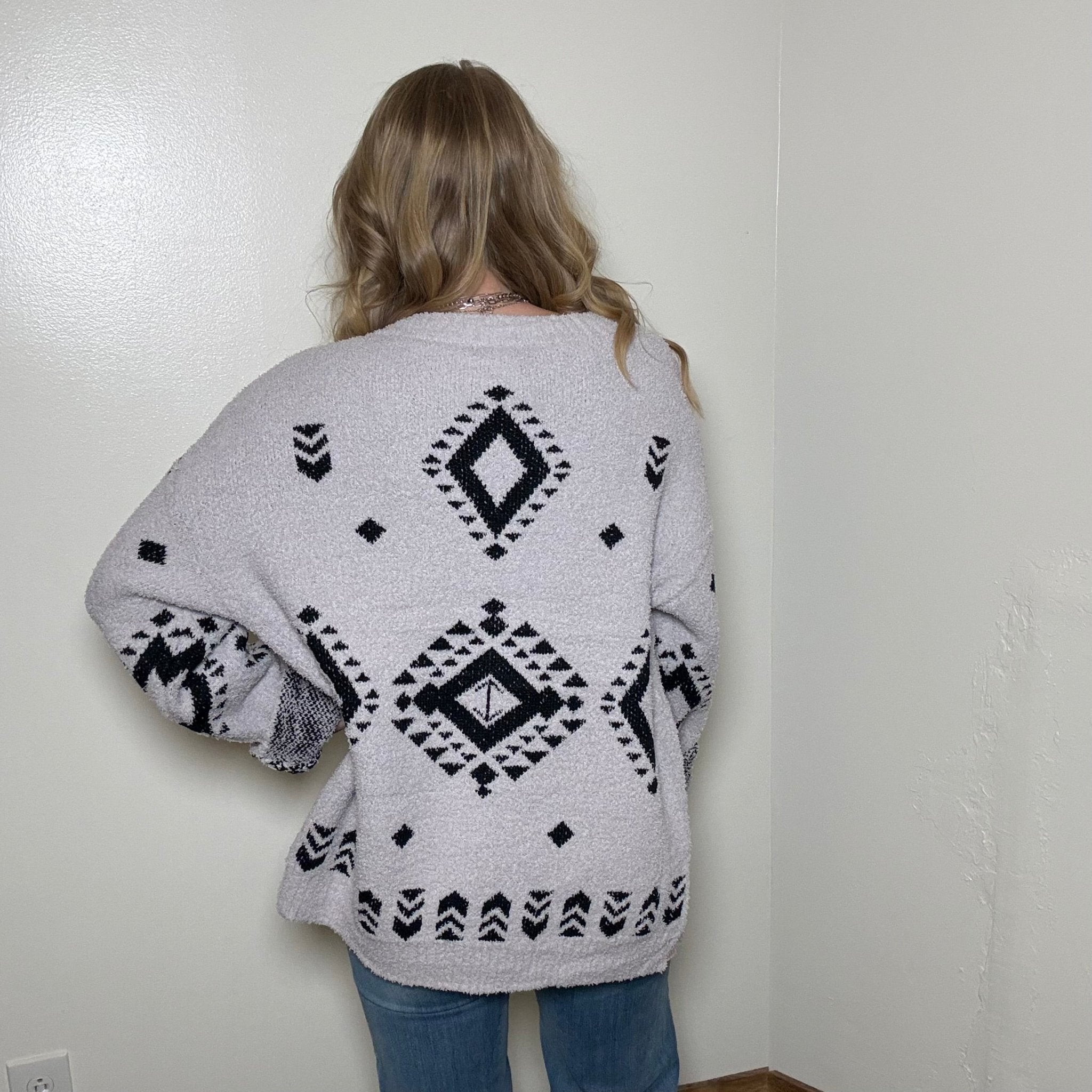 Gray & Black Aztec Southwestern Soft Sweater Cardigan