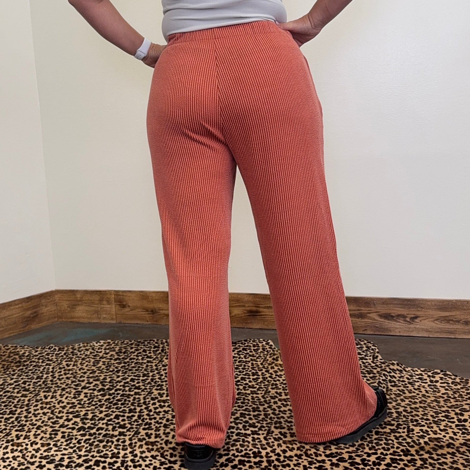Terracotta Orange Ribbed Pants