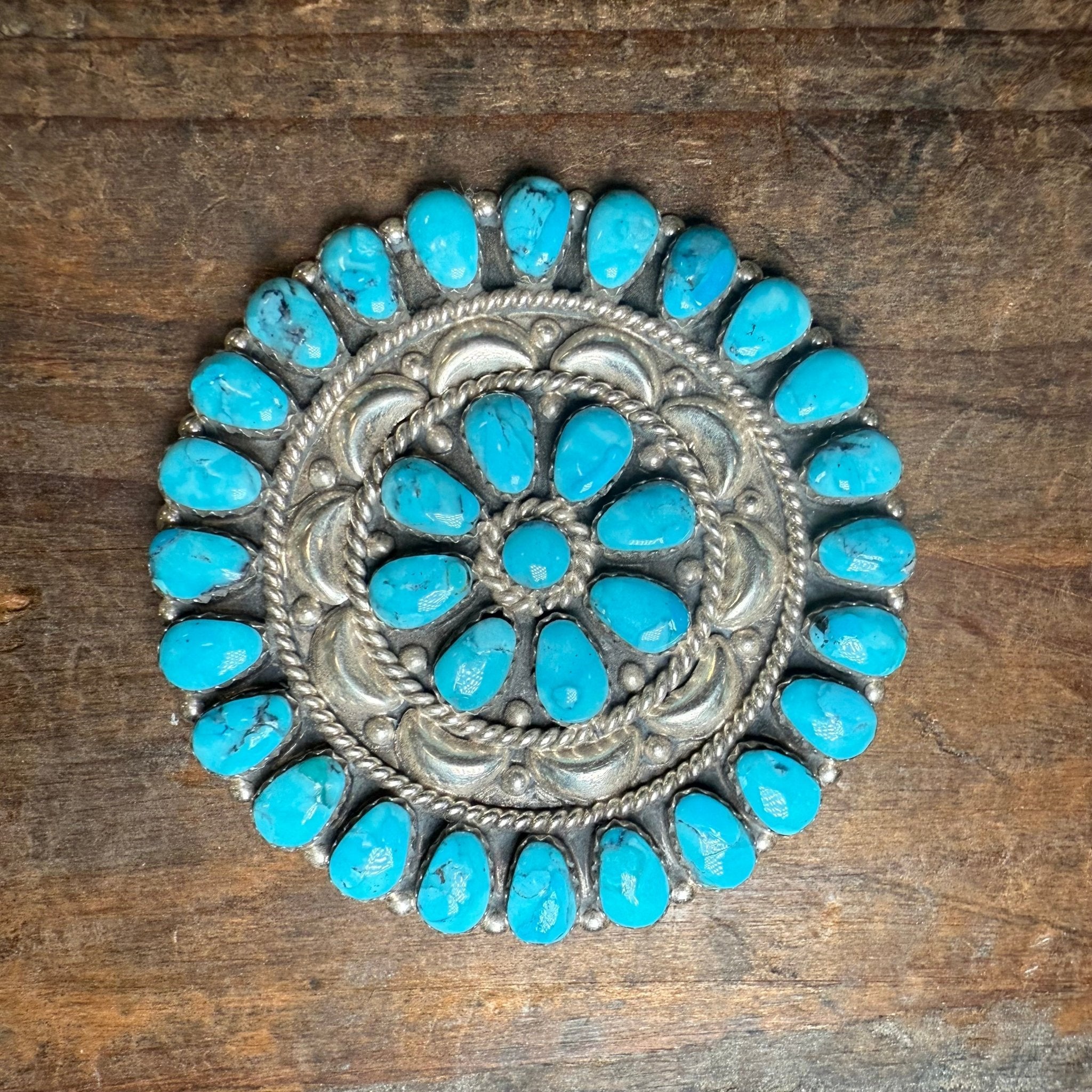 Bright Blue Turquoise Cluster Hat Sterling Silver Pin/Broach or Pendant