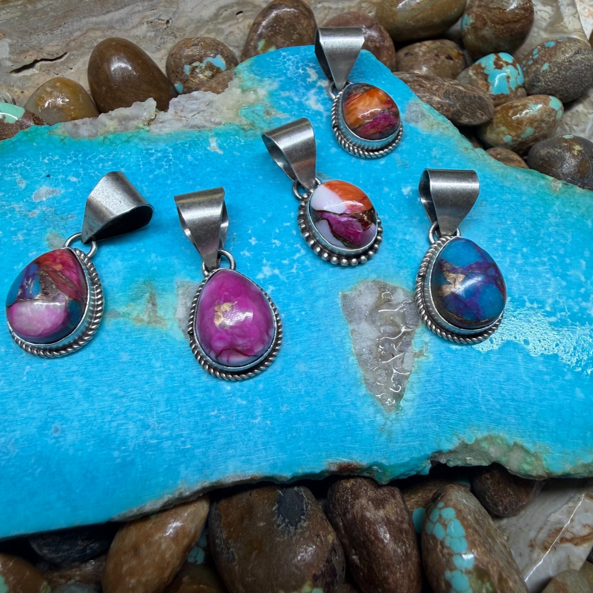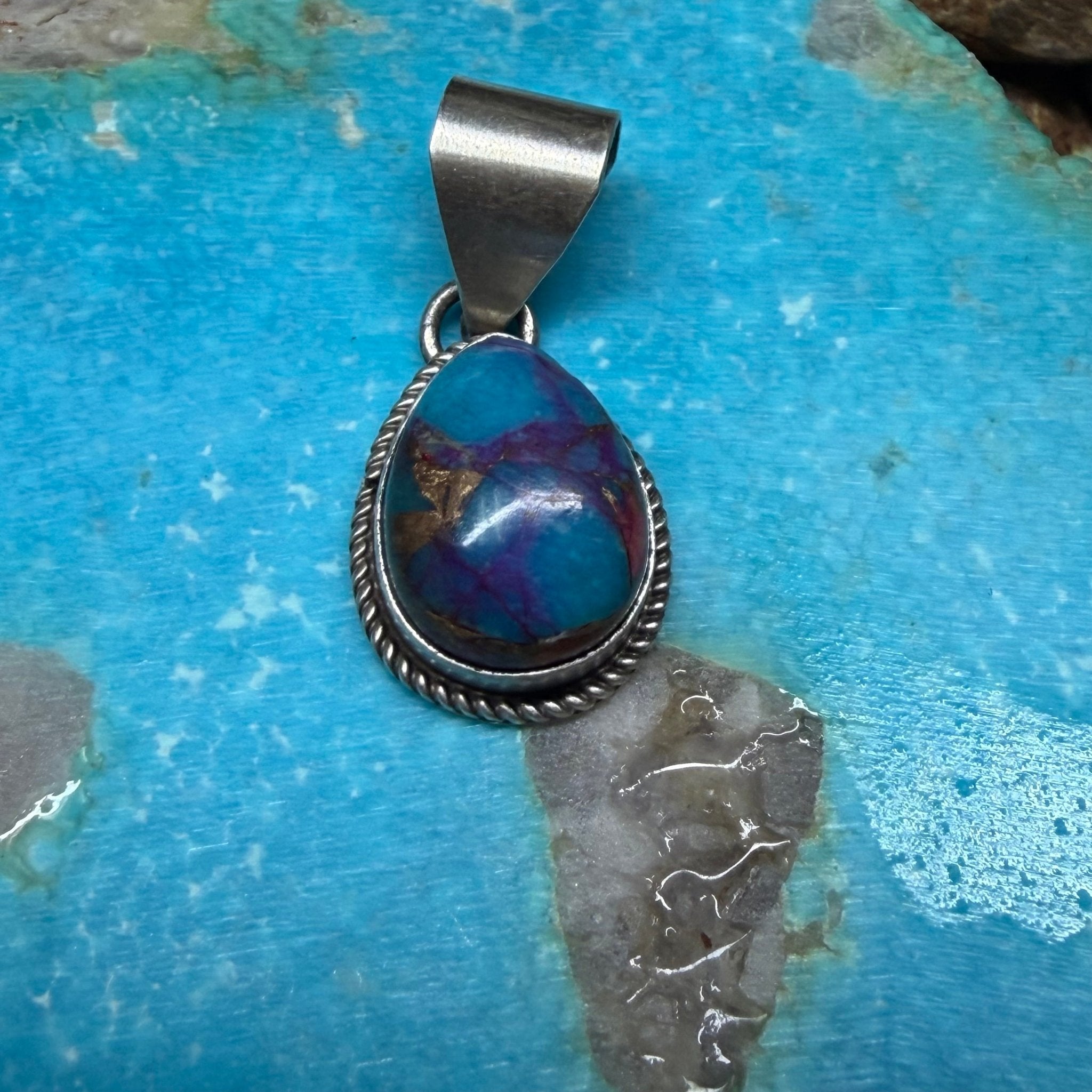 Teardrop Pink Purple Sterling Silver Necklace Pendant