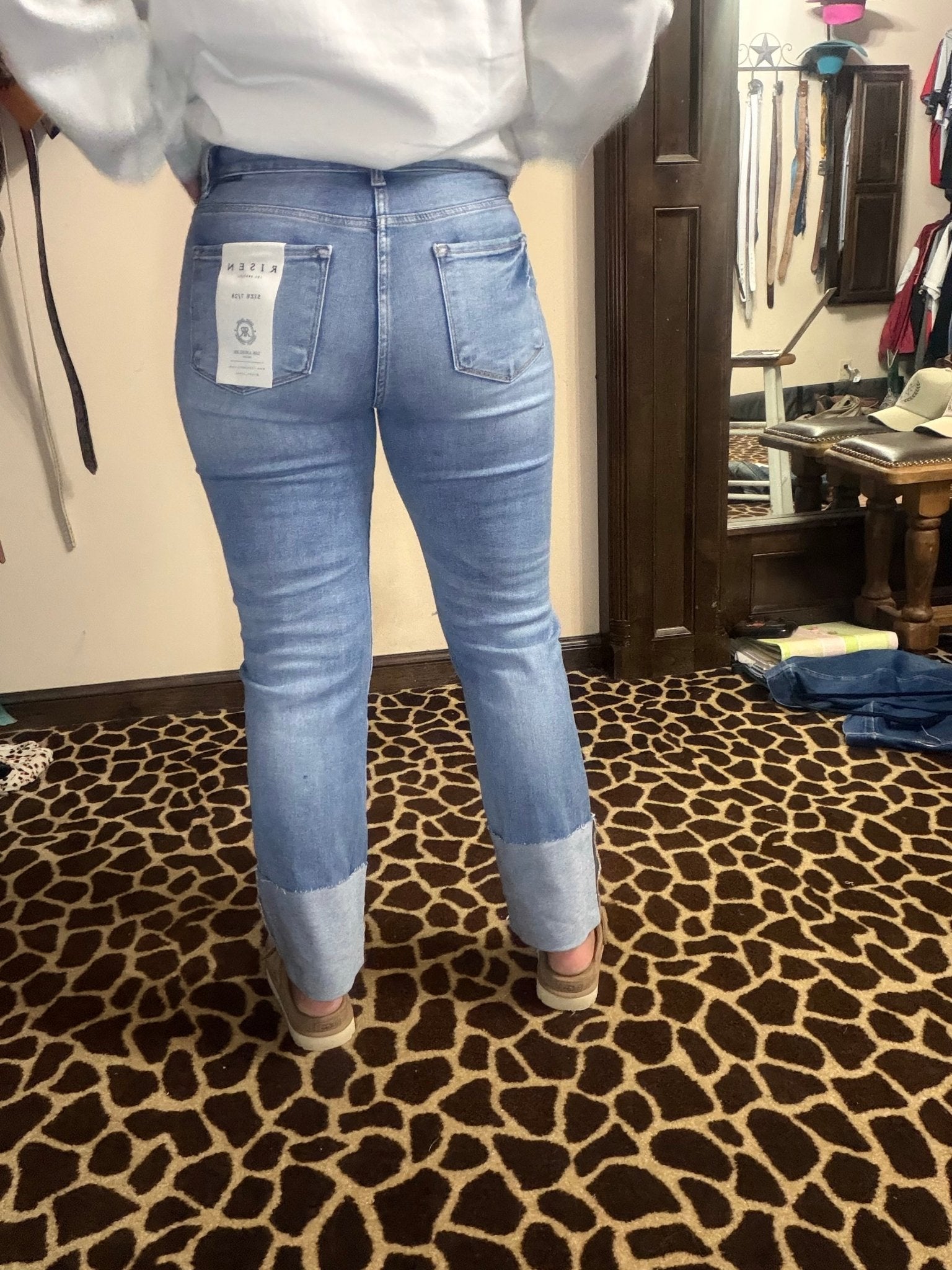These Risen jeans are not just about looks; they deliver on practicality too. The straight-wide cuff adds a unique twist to the typical straight jeans style, making them versatile for various occasions. Whether you're heading out for a casual day or dressing up for an evening outing, these jeans are adaptable and stylish.