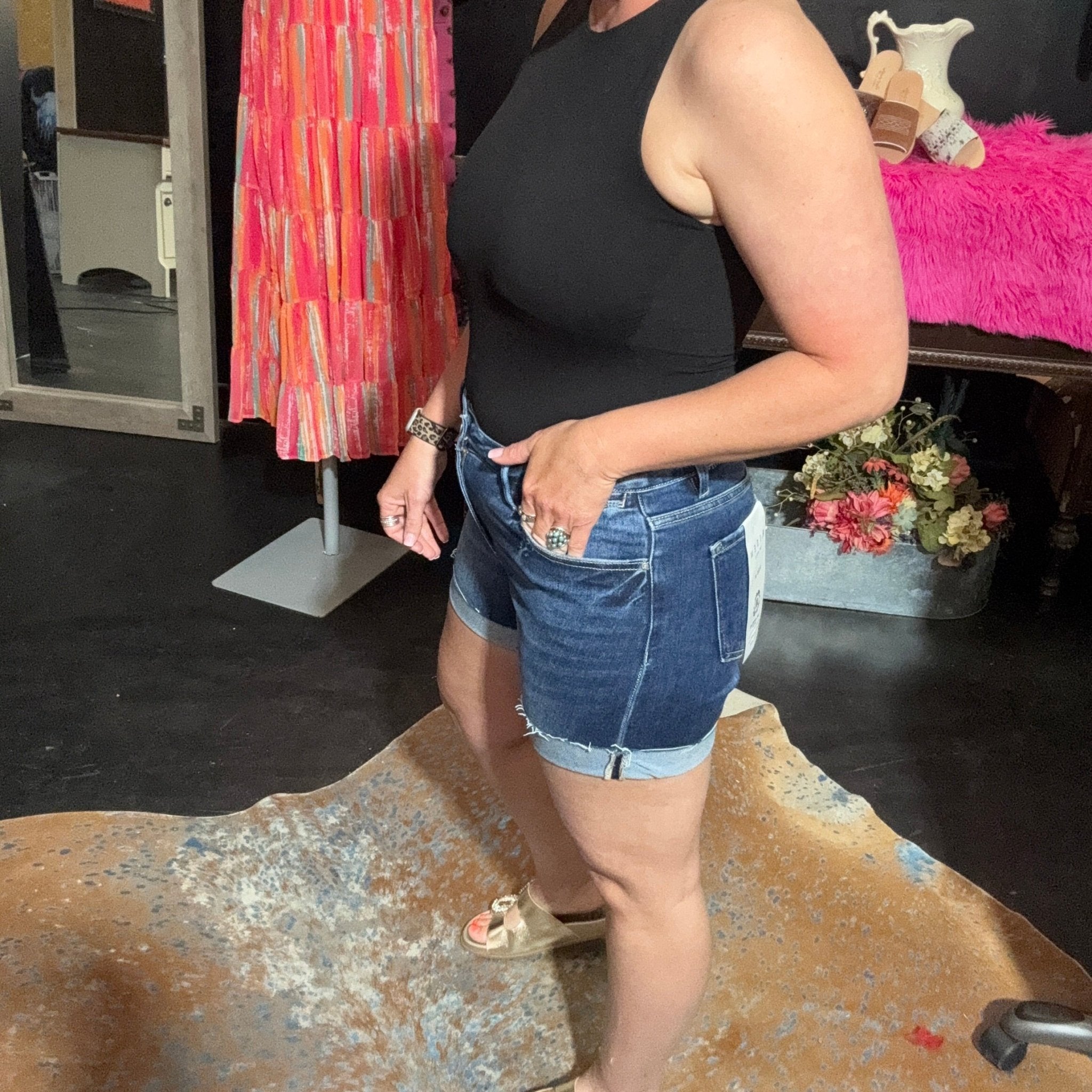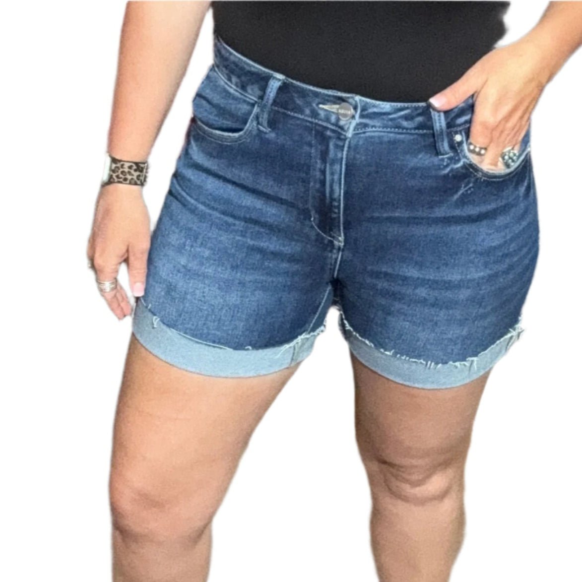 Risen High Rise Cuffed Dark Shorts