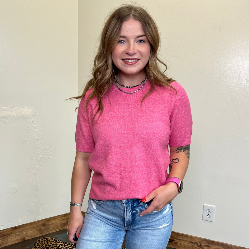 Super Soft Pink Short Sleeve Crew Neck Sweater