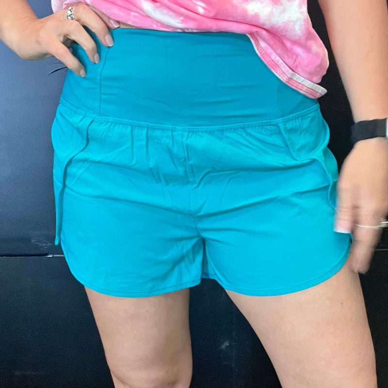 Turquoise High Waisted Athletic Shorts with Zip Waist Pocket
