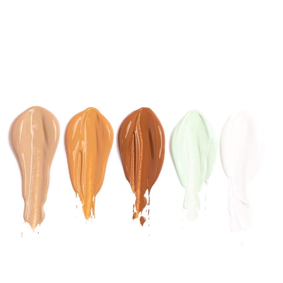 • Color corrects to counteract specific flaws and even out skin tone