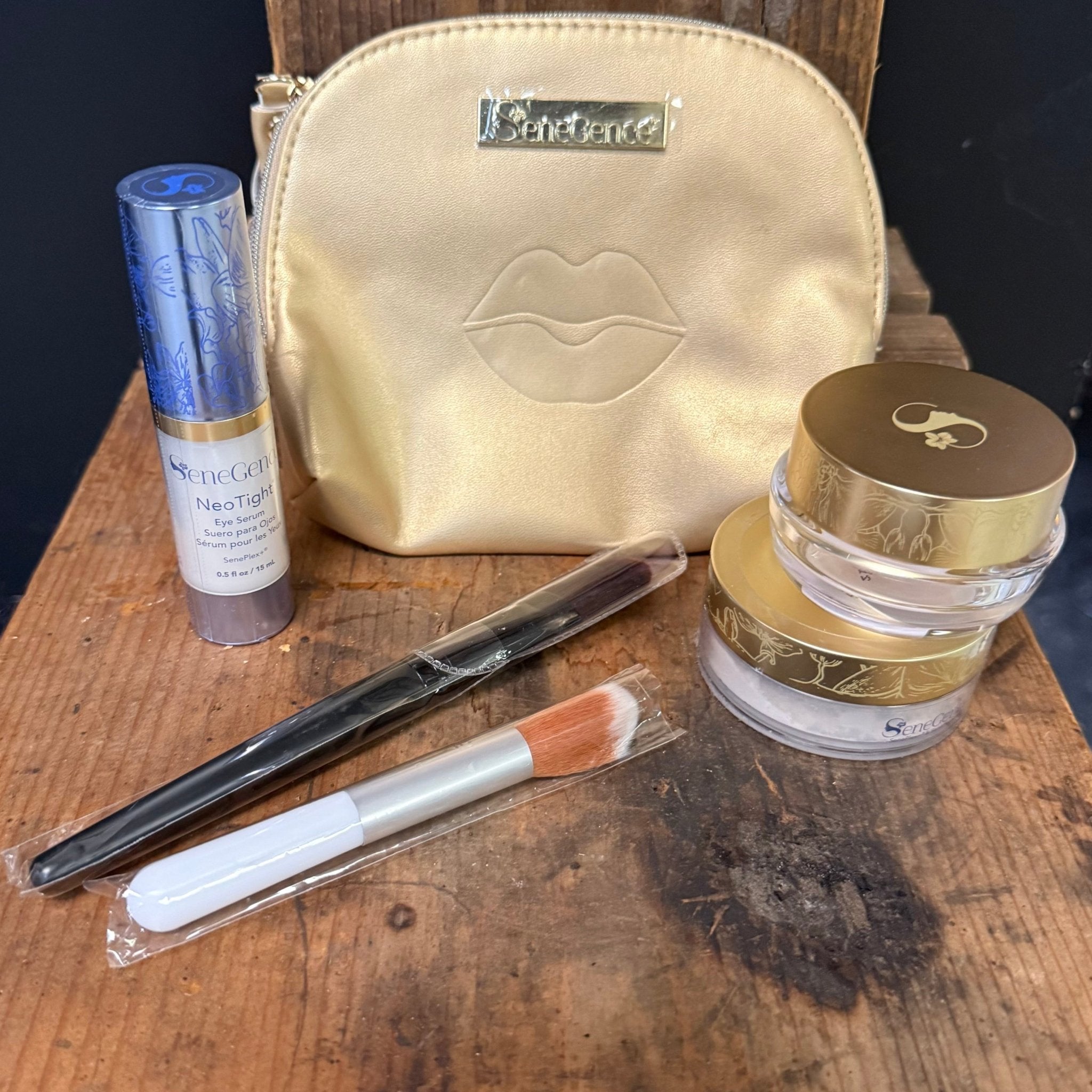 INCLUDES; EyeLuminator, 1 Translucent Powders, Neo Tight Eye Serum, Free flat Brush, Free Powder Brush, Free Bag