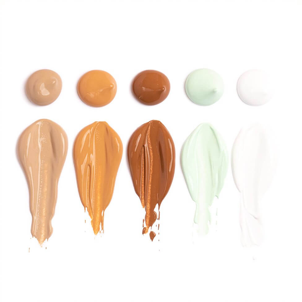 • Color corrects to counteract specific flaws and even out skin tone