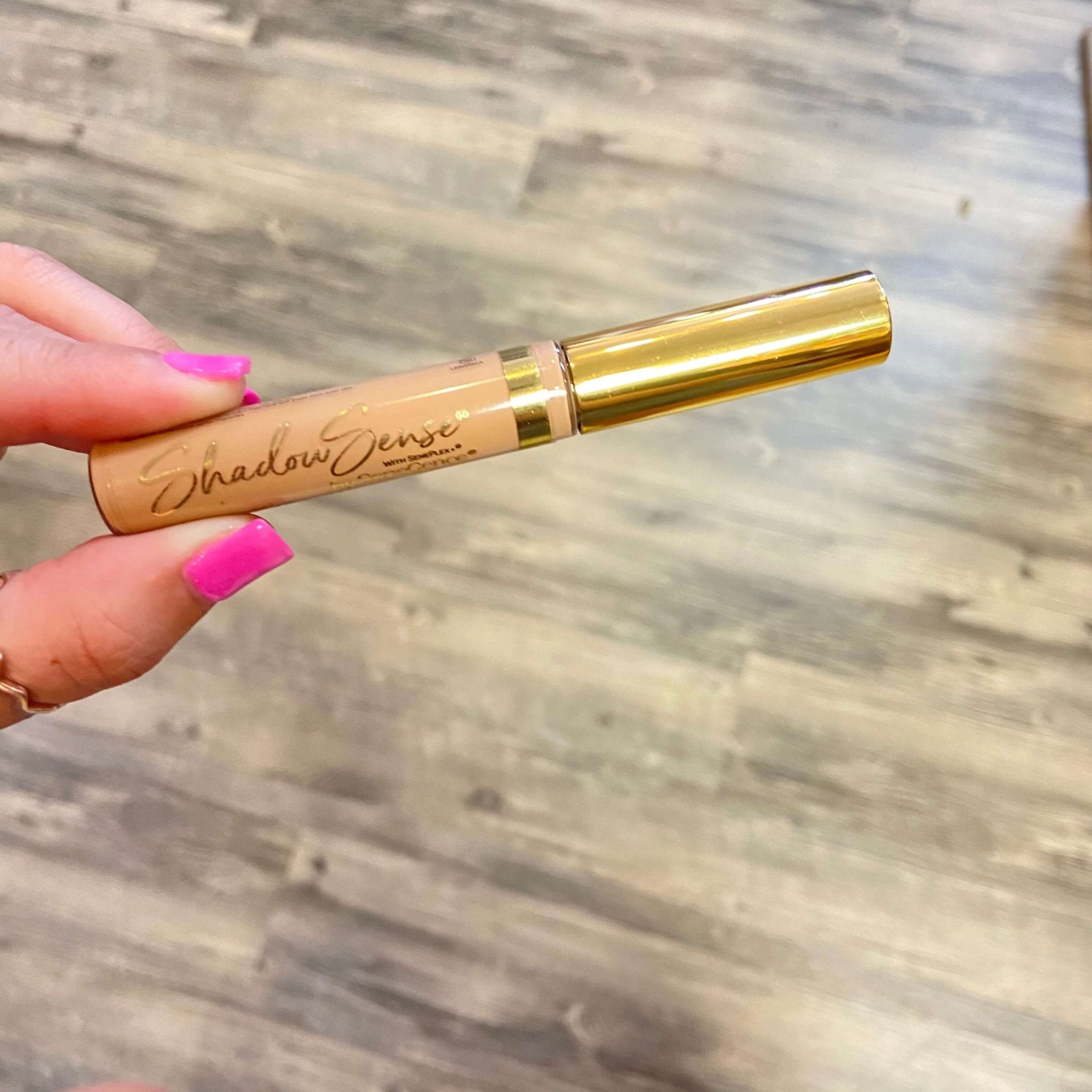 Compared to foundation, ShadowSense has a thicker texture for more intense color payoff. It dries to a long-wearing, crease-resistant powder finish.