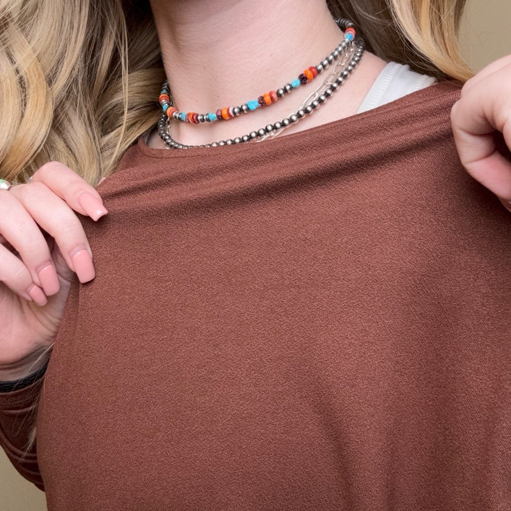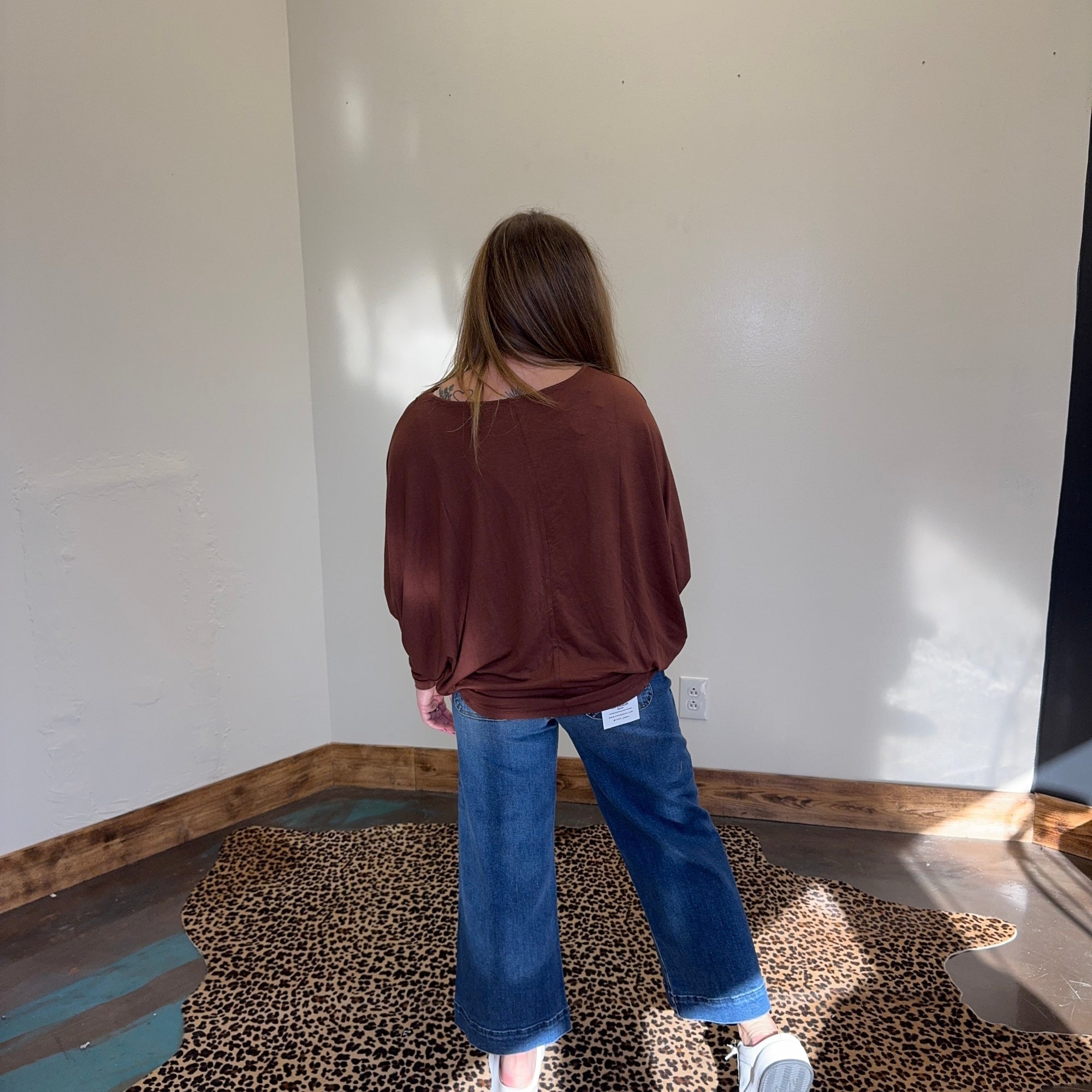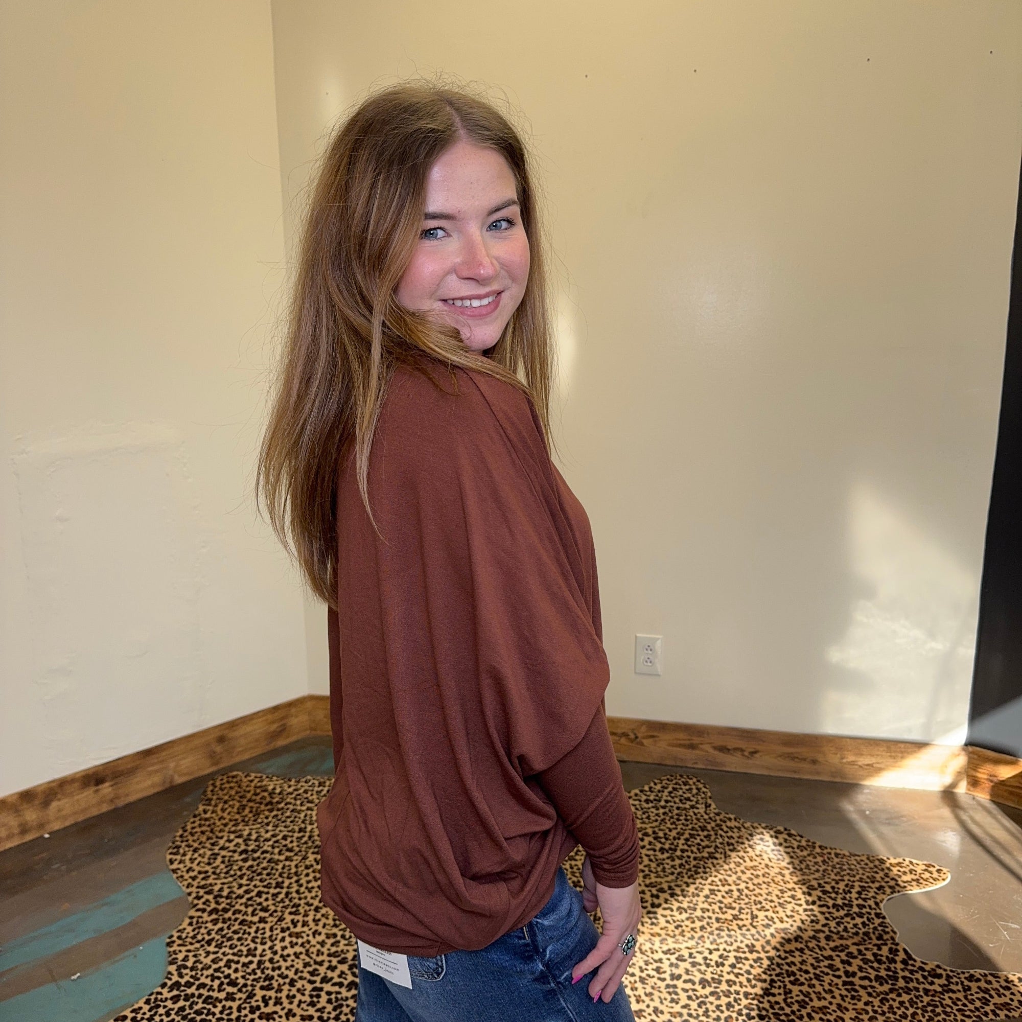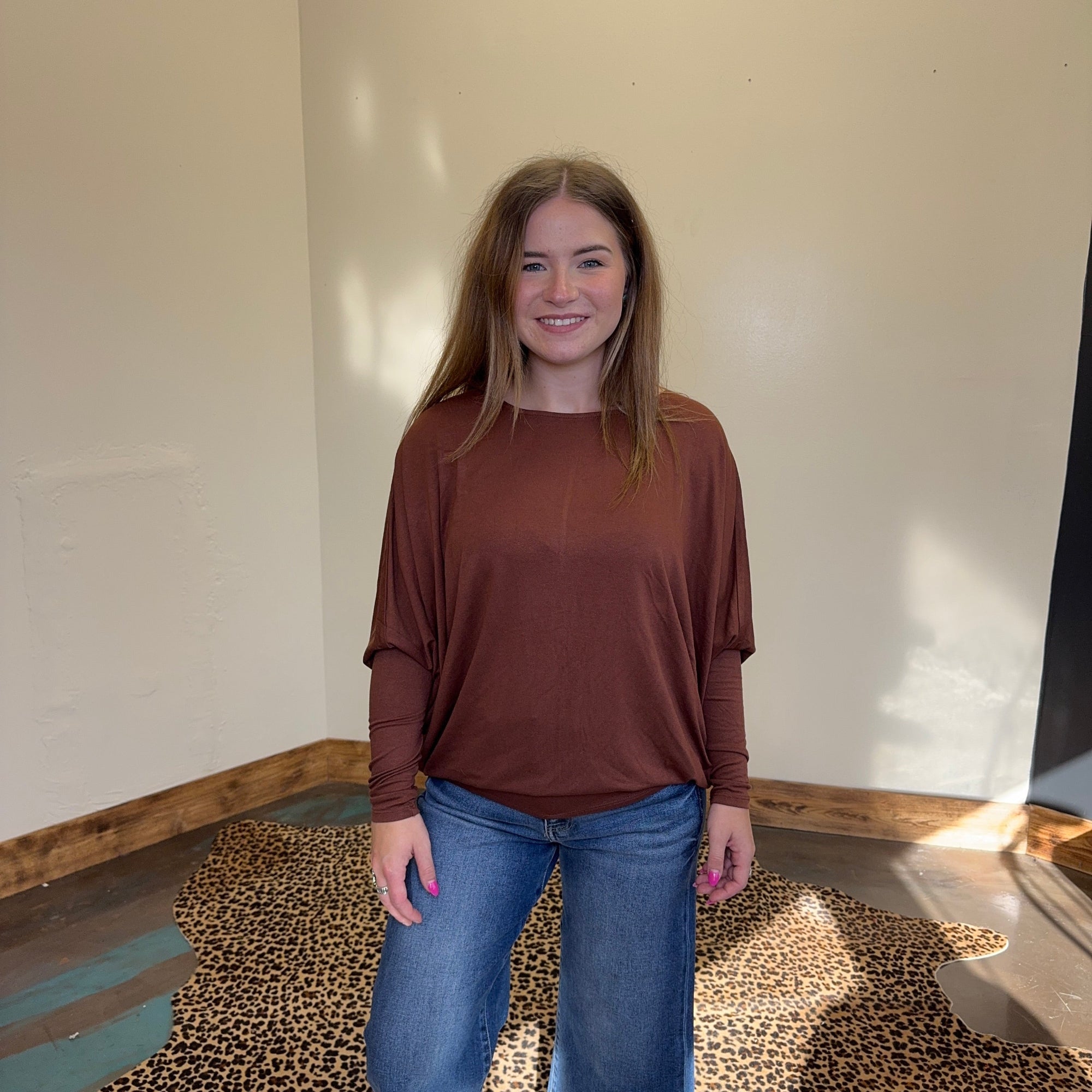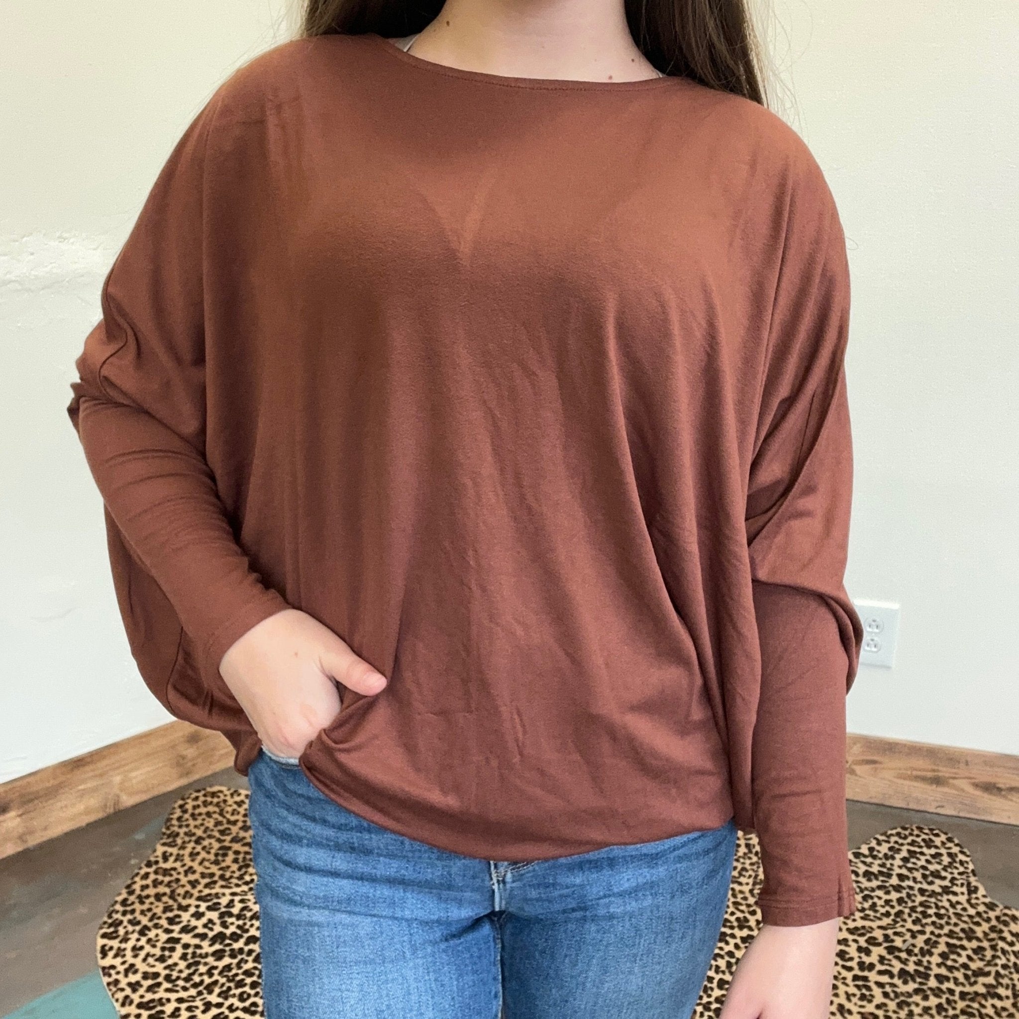 Chestnut Brown Dolman 3/4 Sleeve Shirt