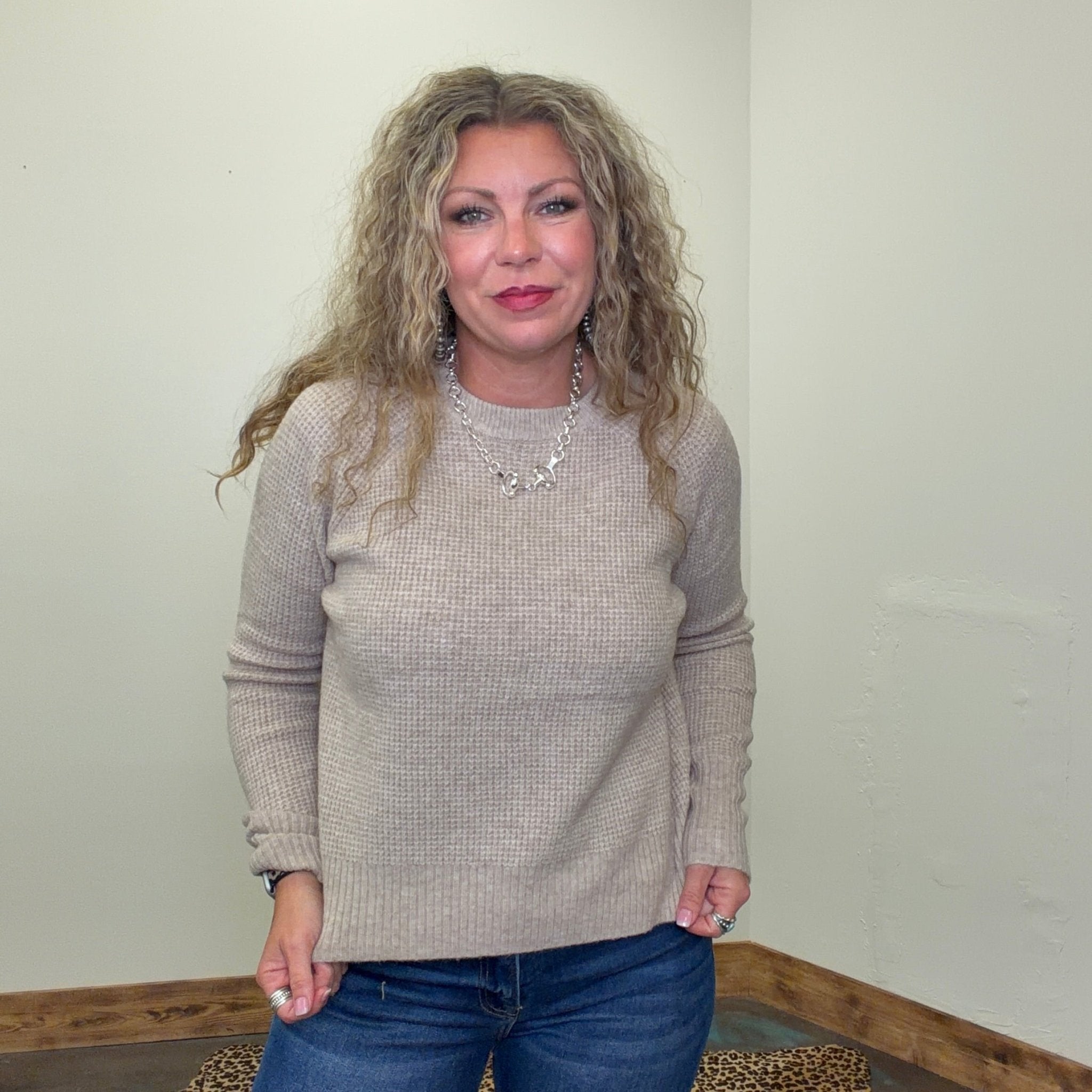 Khaki Soft Waffle Crew Neck Long Sleeve Sweater