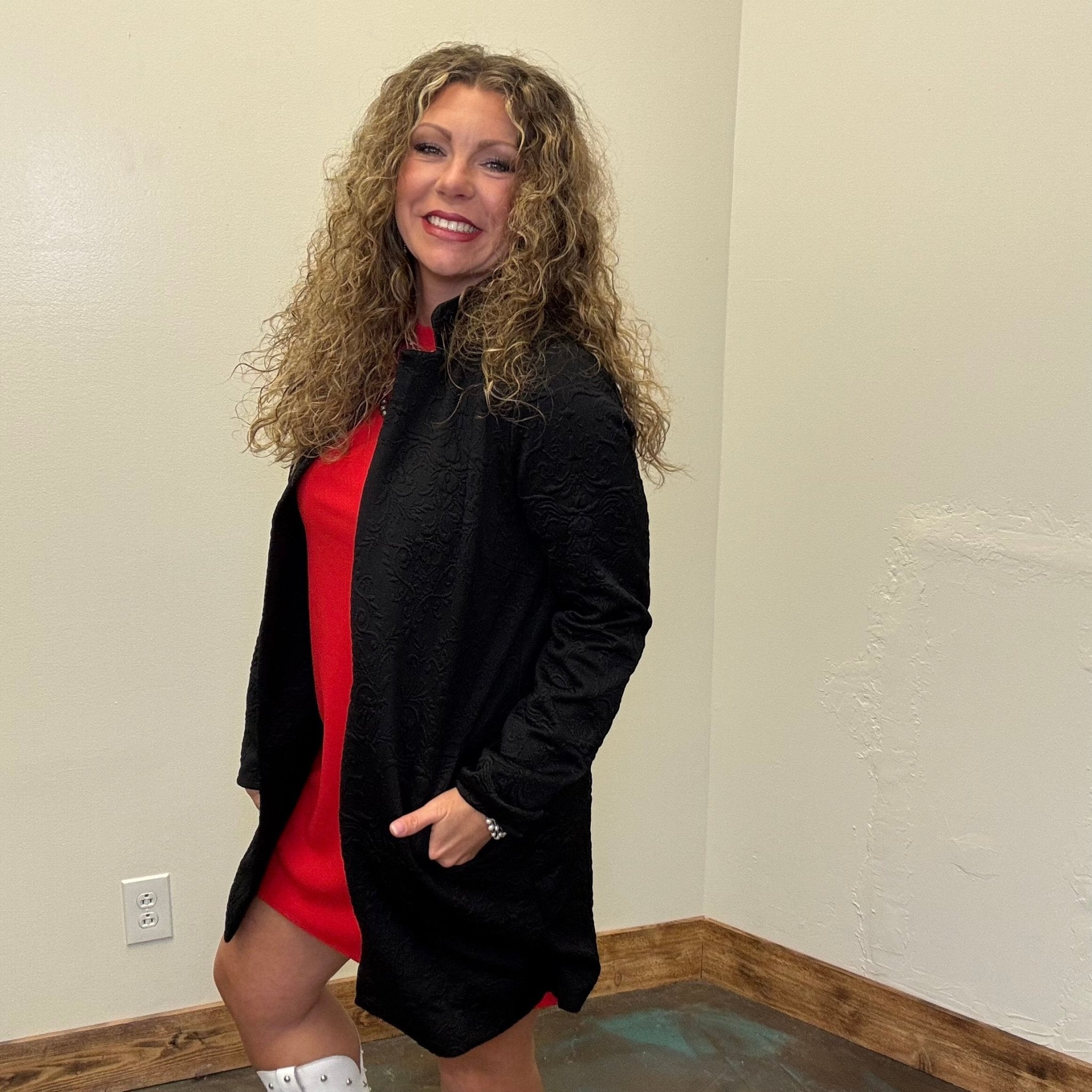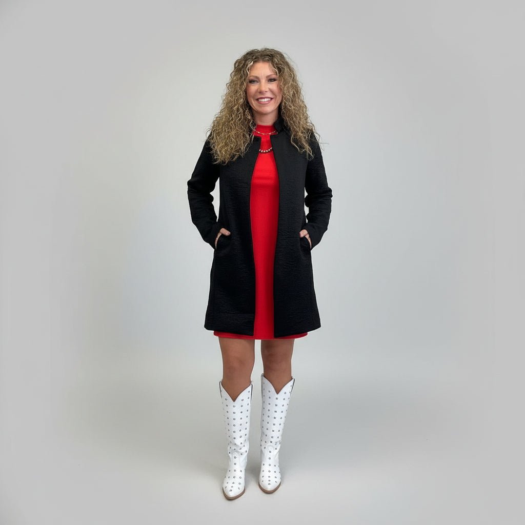 Black Embossed Long Sleeve Swing Cardigan/Jacket