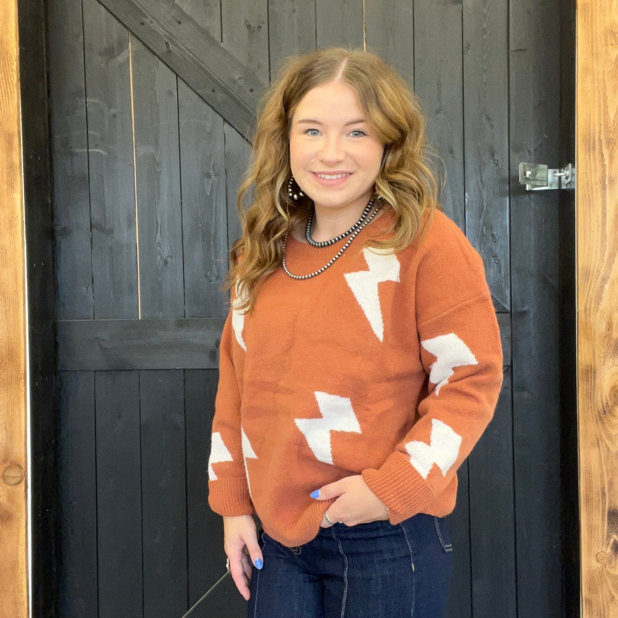 Rust & Ivory Lightning Bolt Sweater