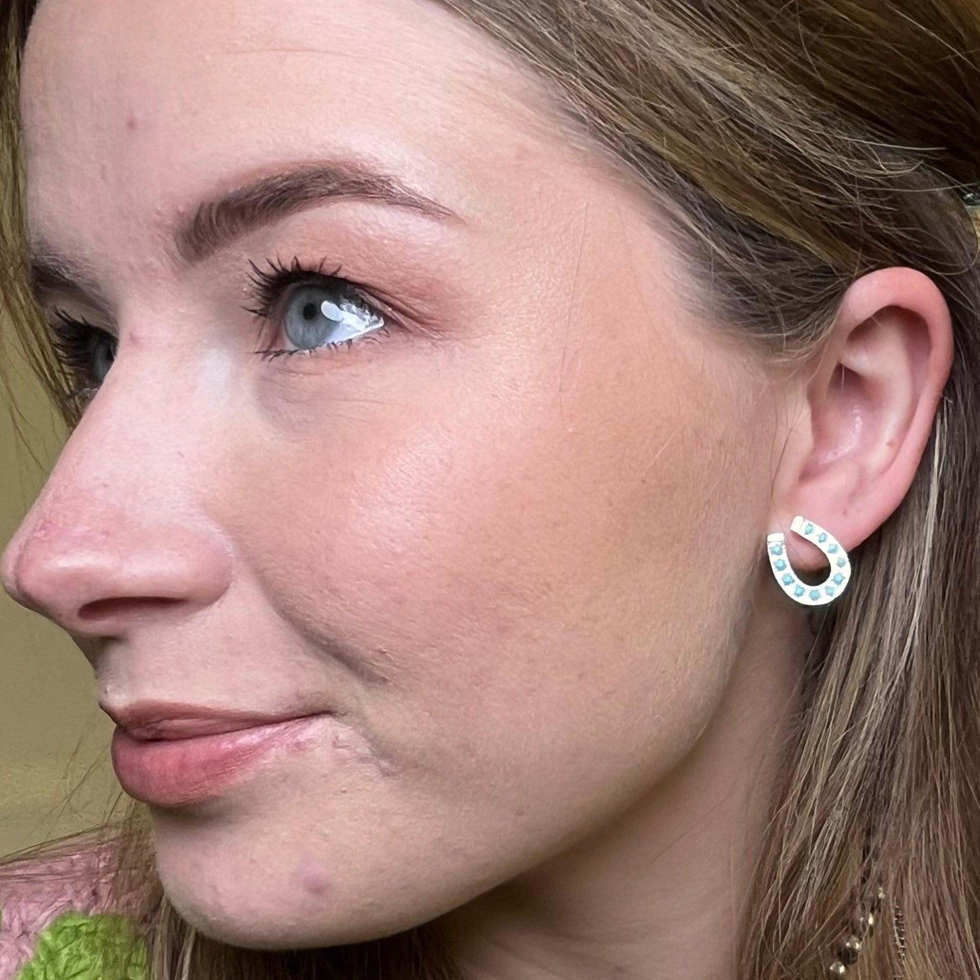Sparkly Turquoise Horse Shoe Post Fashion Earrings